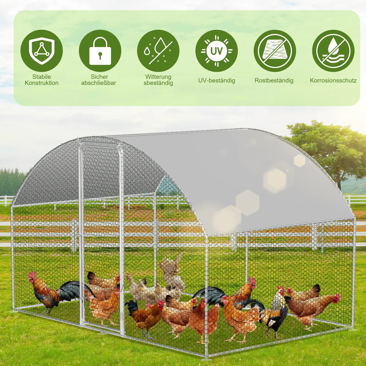 Sonnewelt Hühnerstall Freilaufgehege Kuppeldach Verzinktem Stahl 3x2x2m