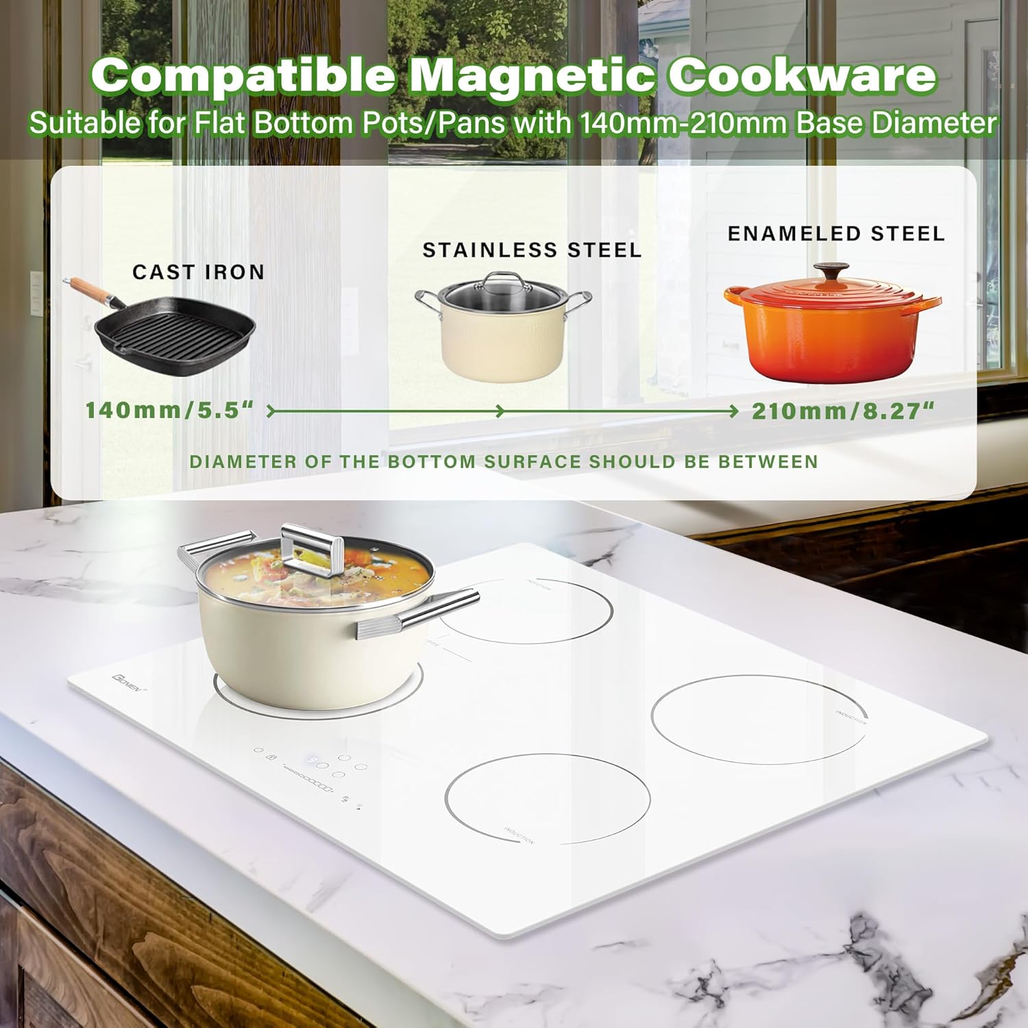 GIONIEN Induktionskochfeld mit Stecker 60cm 16Amp,Integriertes Elektrokochfeld Plug in mit Brückenzone, 4 Kochstellen Herd,weiß,2800W