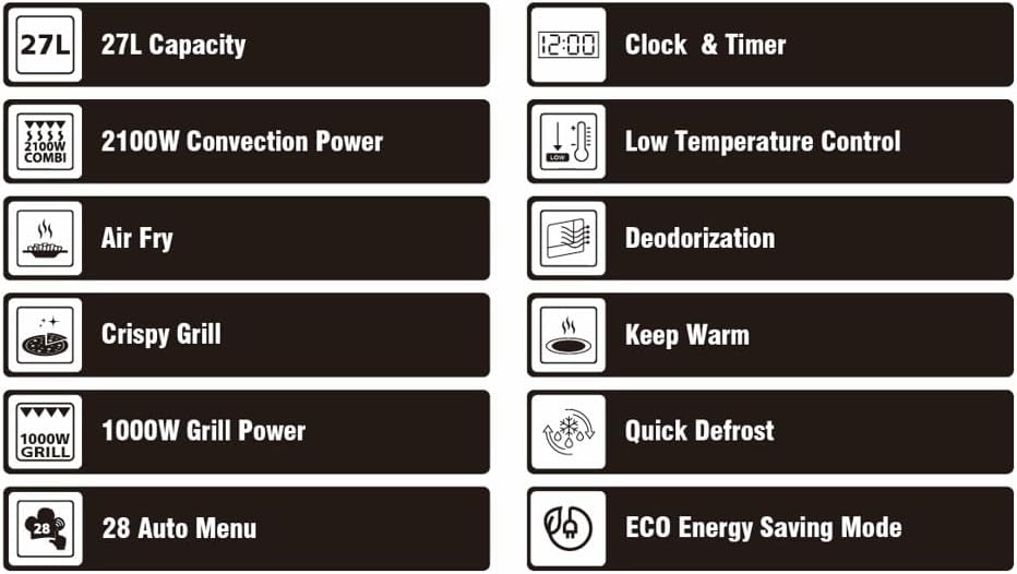 Sharp RCA271TB 5-in-1 Airfry-Mikrowelle 900W, Grill 1000 W, Heißluft & AirFry-Funktion, Konvektion 2100W, 27 L, 28 Autom.pr., Gewicht und zeitgesteuertes Auftauen, Schwarz