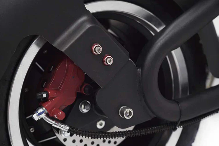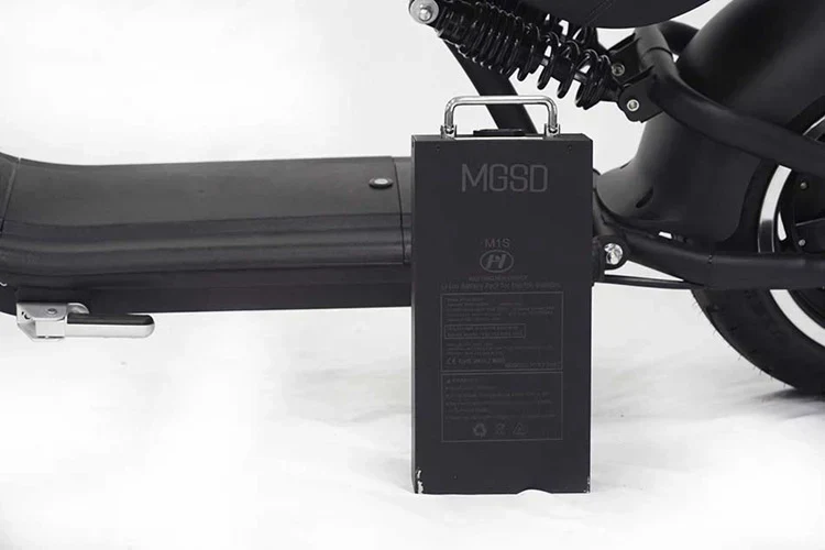 Der Mangosteen M1P verfügt über eine Vollfederung mit einer hydraulischen Vorderradgabel und einem doppelten Federstodmpfer, die für eine komfortable Fahrt sorgen. Die klappbaren Furasten, das LCD-Display, die hydraulischen Scheibenbremsen vorne und hinten sowie die superhellen LED-Scheinwerfer und Blinker runden das Paket ab.