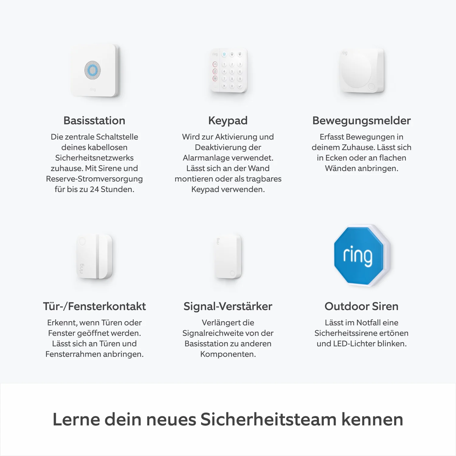 Fortschrittliche Sicherheit für Ihr gesamtes Zuhause: Das Ring Alarm Security Kit bietet ein neues Design und denselben, umfassendesn Schutz. Es lsst sich schnell installieren, ist einfach zu bedienen und kann vollstndig an Ihr Zuhause und Ihre Bedürfnisse angepasst werden.