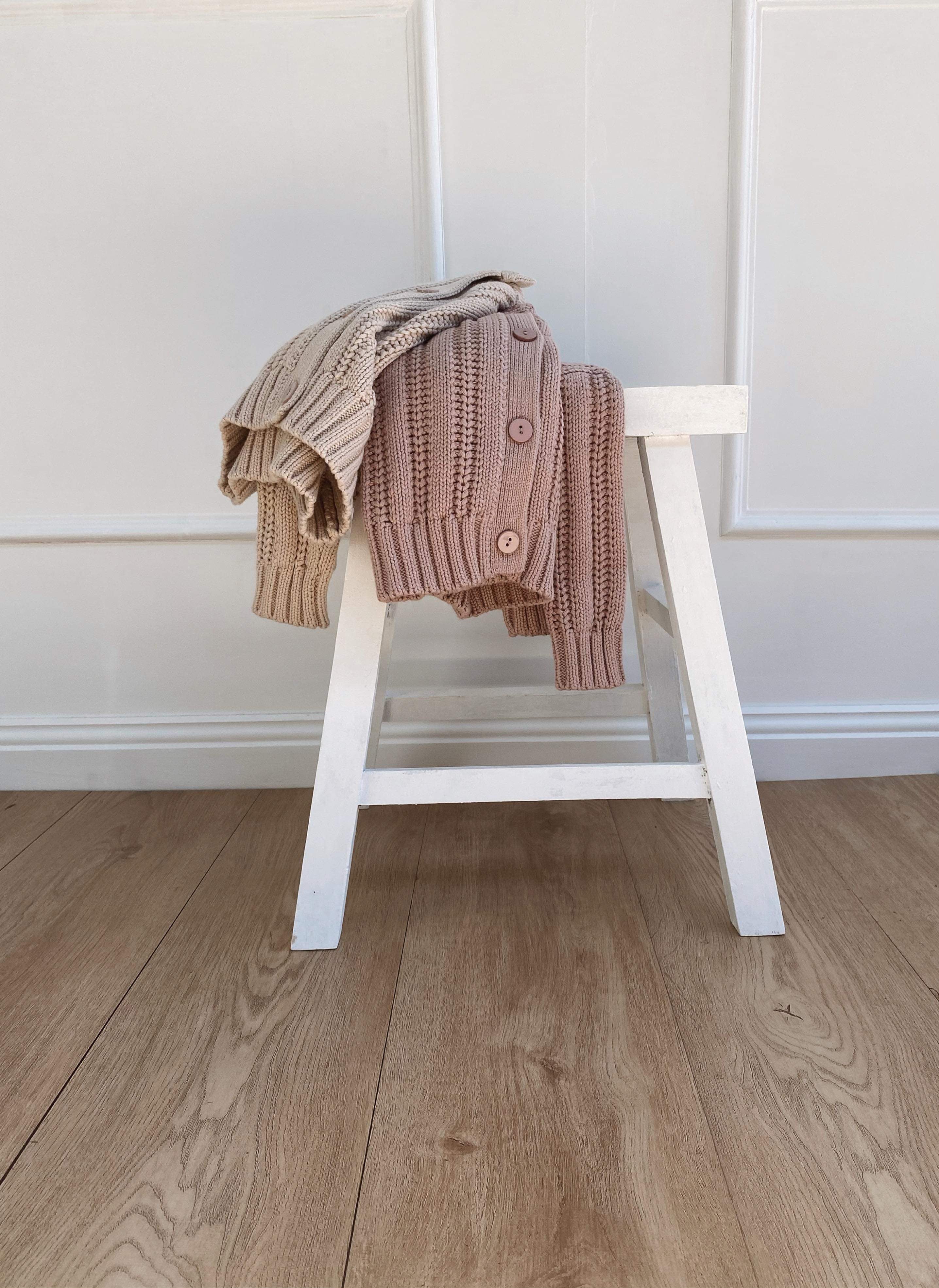 Who doesn't love a chunky knit. This Beige and Rose Pink knit have been made from 100% cotton that can be worn with almost any garment of clothing. This is the most perfect piece for layering and is the ultimate winter staple. We wish these came in adult sizes.