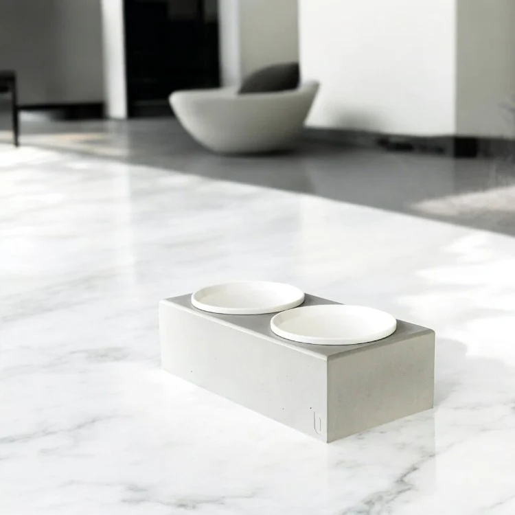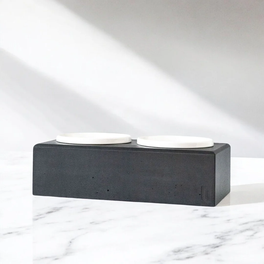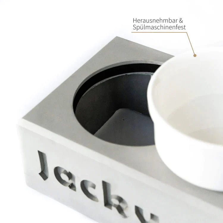 Unsere Beton-Futterstation PATERA DUO bietet deinem Hund alles, was sein Herz begehrt. Sie ist robust, langlebig und vor allem standfest.