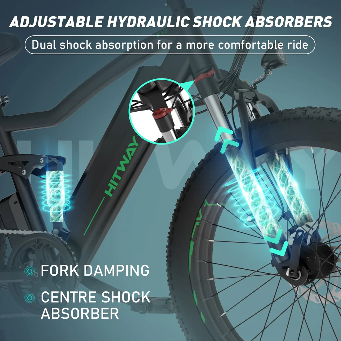 Das Hitway BK9 E-Bike ist der perfekte Begleiter für Abenteuer auf jedem Terrain. Ausgestattet mit einem leistungsstarken 500W Motor und einer 48V 15Ah Lithium-Ionen-Batterie, bringt dieses E-Bike Sie mühelos über Bergstraen, Sandwege, verschneite Pfade und Stadtstraen. Die breiten 26' x 4.0' Fat Tires bieten auergewhnliche Stabilitt und Traktion, whrend die einstellbaren hydraulischen Stodmpfer für maximalen Komfort sorgen, selbst auf den holprigsten Strecken.