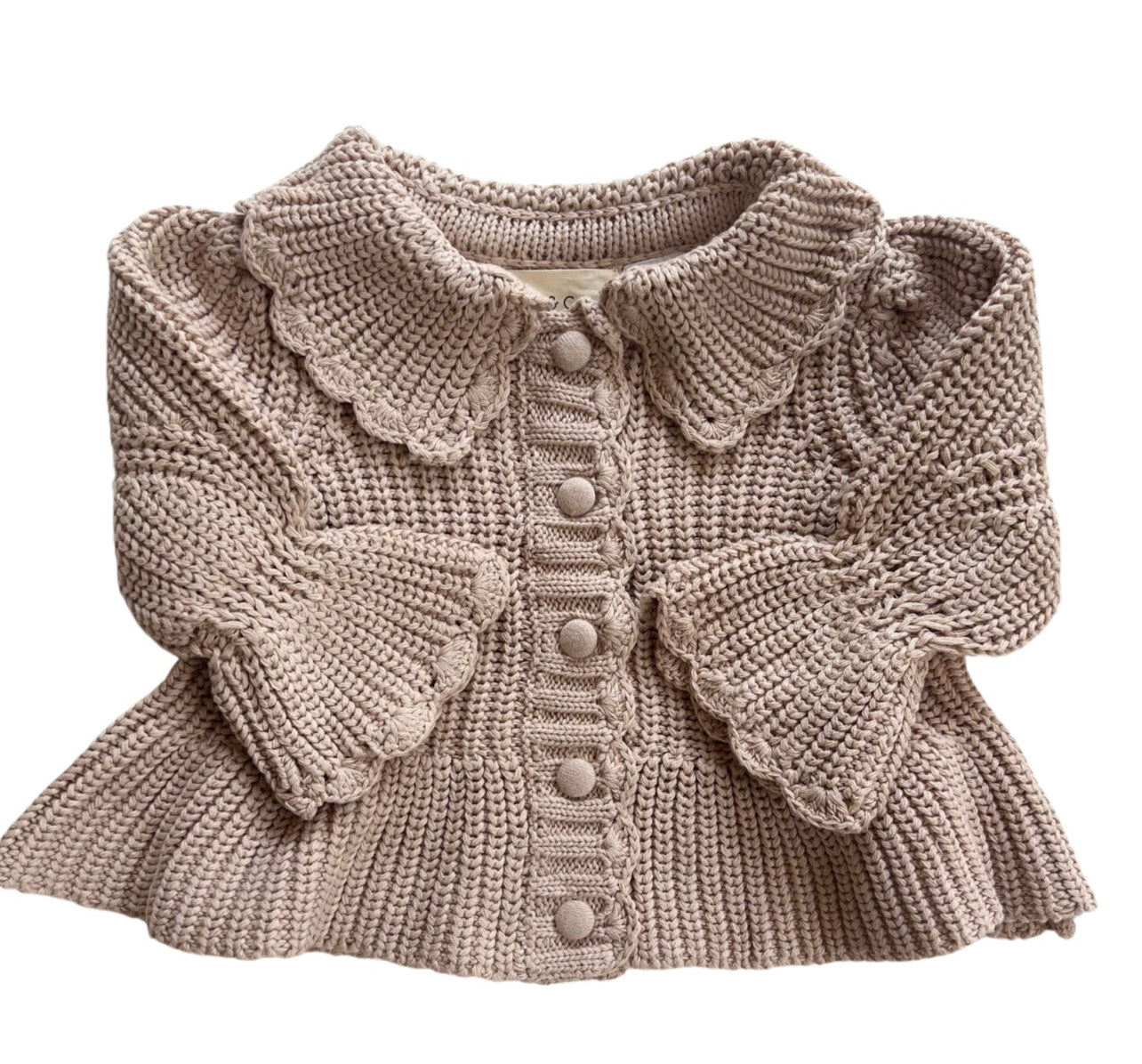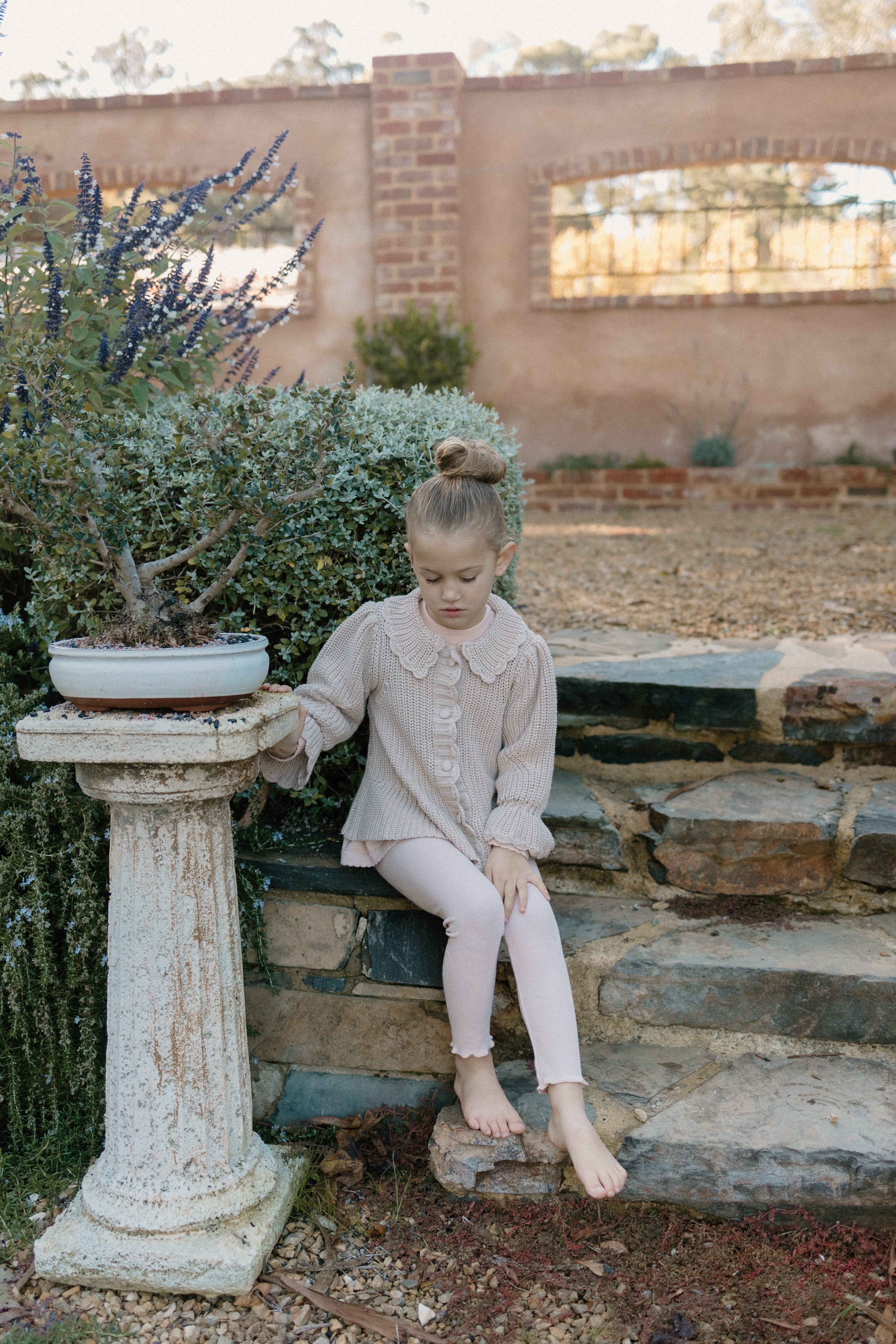 Our new adorable collared Kenya cardigan with dainty details is simply stunning. Paired perfectly with our Gracie dress and ribbed leggings. An ideal outfit for this Autumn or Winter.