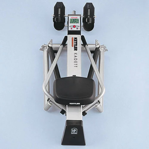 Die Rudermaschine Kettler Kadett mit Auslegertechnik ermglicht eine kreisfrmige Ruderbewegung. Der Bewegungsablauf kommt dem echten“ Rudern auf dem Wasser sehr nahe. Die auf die individuelle Beinlnge einstellbaren Fustützen ermglichen die optimale Trainingsposition auf dem Ruderheimtrainer Kettler Kadett zu finden. Schlaufen an den beweglichen Fustützen fixieren die Füe whrend des Ruderns. Der kugelgelagerte Rollsitz bewegt sich leichtgngig auf der stabilen Profilschiene hin und her. Der Zugwiderstand kann manuell an den Hydraulikzylindern in 12 Stufen reguliert werden.
