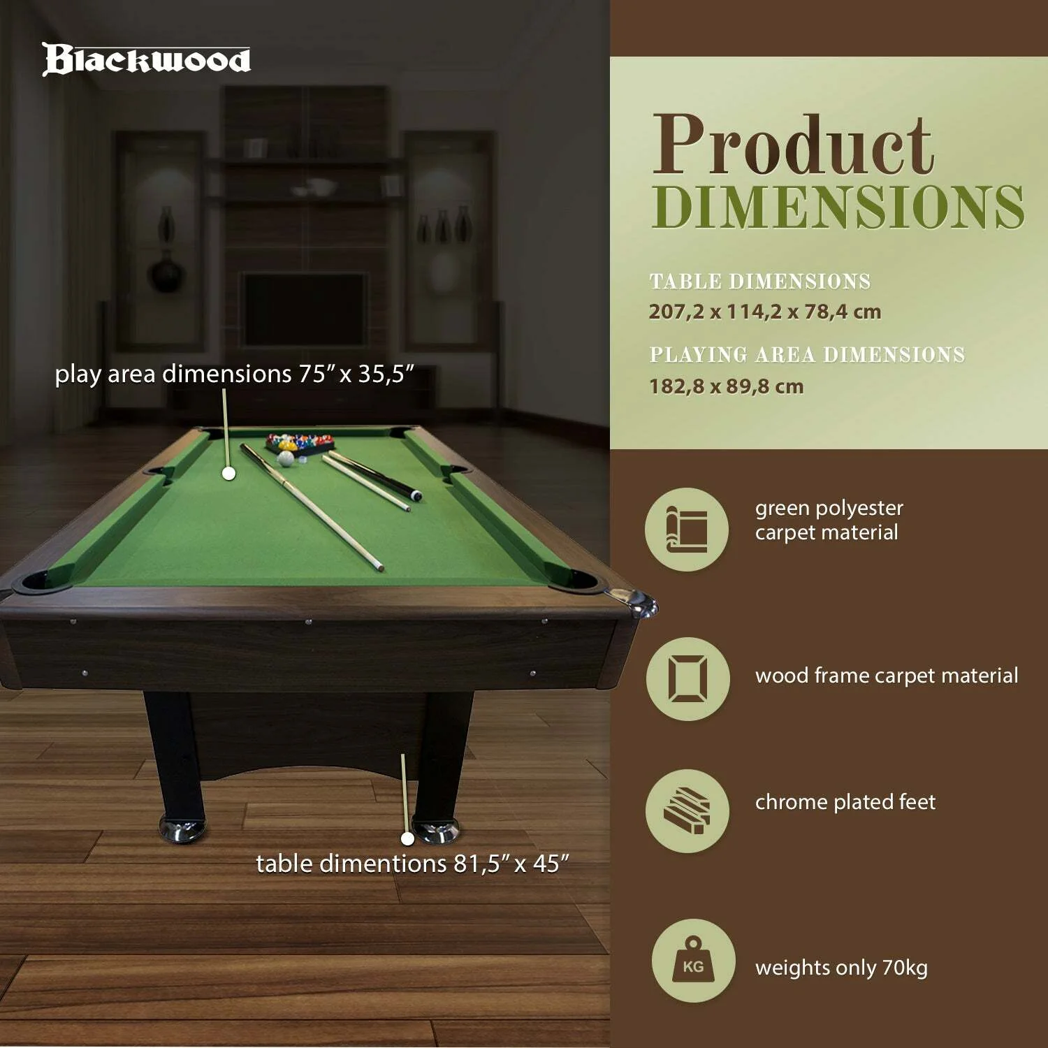 Sie haben keine Lust, nach drauen in eine Bar mit Billardtisch oder in eine teure Billardhalle zu gehen, aber Sie haben trotzdem Lust, Billard zu spielen? Lsen Sie Ihr Problem mit dem hochwertigen, 6 Fu langen Blackwood-Poolbillardtisch und schaffen Sie sich Ihre eigene Billardhalle in Ihrem Zuhause!