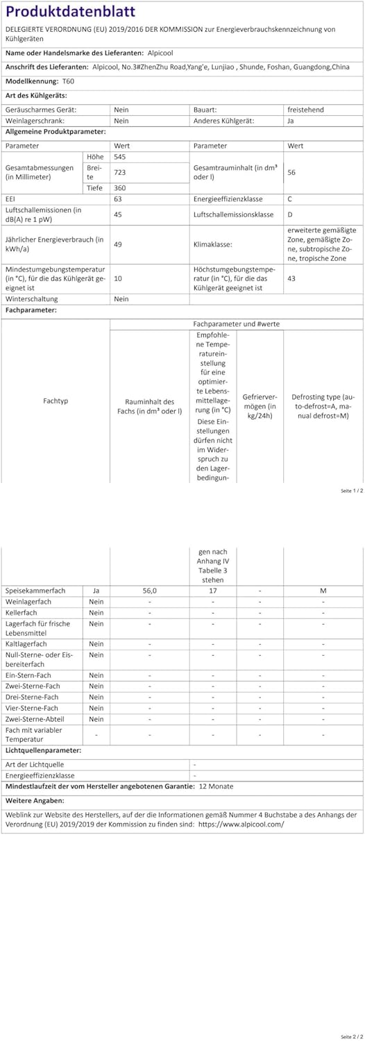 Extreme Kühlleistung: Erreichen Sie Temperaturen von bis zu -20 °C, um auch empfindliche Lebensmittel frisch zu halten.