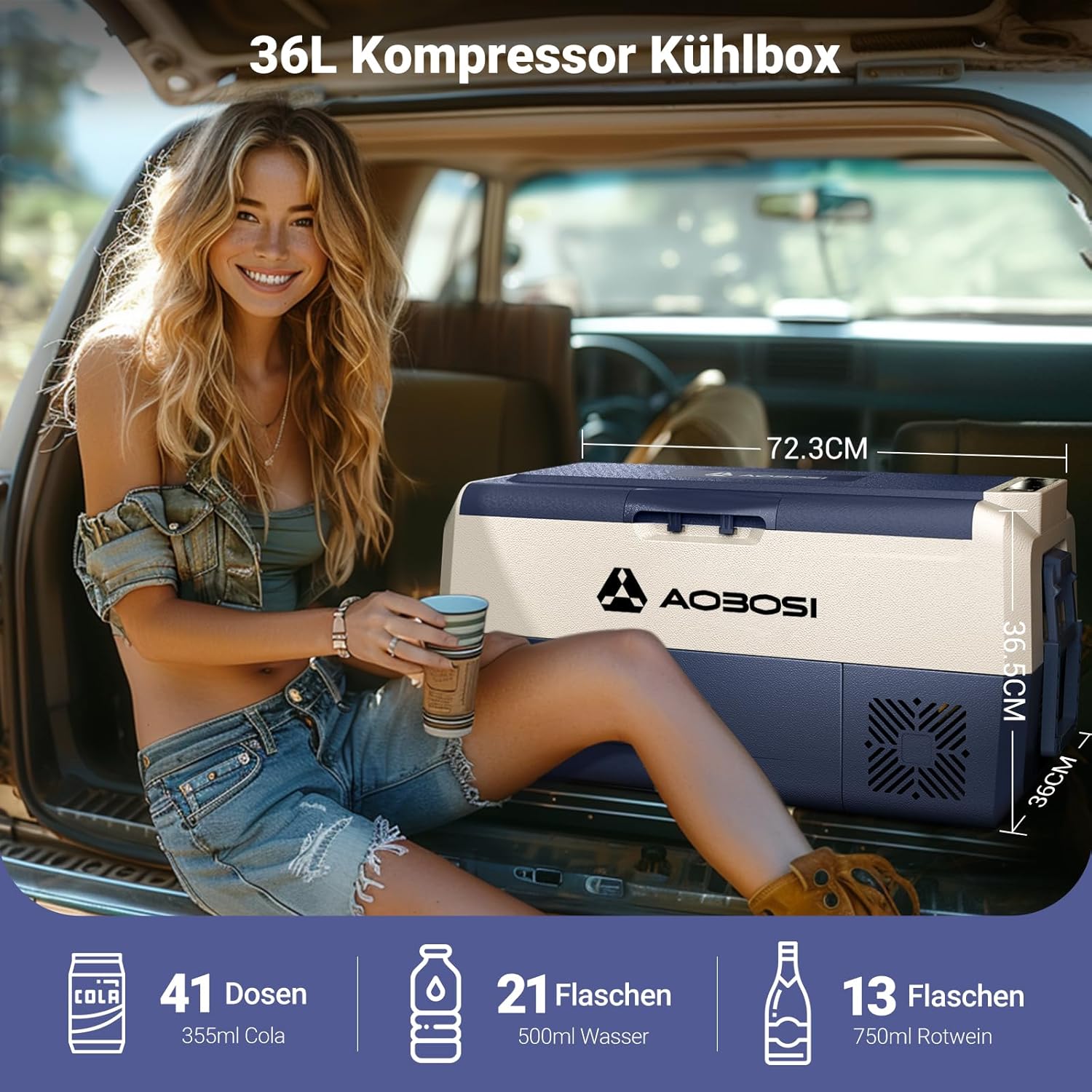 Entdecken Sie die innovative AAOBOSI Kompressor Kühlbox, die Ihr Kühlbedürfnis revolutioniert! Mit einem großzügigen Fassungsvermögen von 36 Litern bietet diese Kühlbox genügend Platz für all Ihre Lebensmittel und Getränke, egal ob Sie unterwegs sind oder ein Picknick im Freien genießen. Die herausragenden Eigenschaften dieser Kühlbox machen sie zur idealen Wahl für Auto, Lkw, Boot und Wohnmobil.