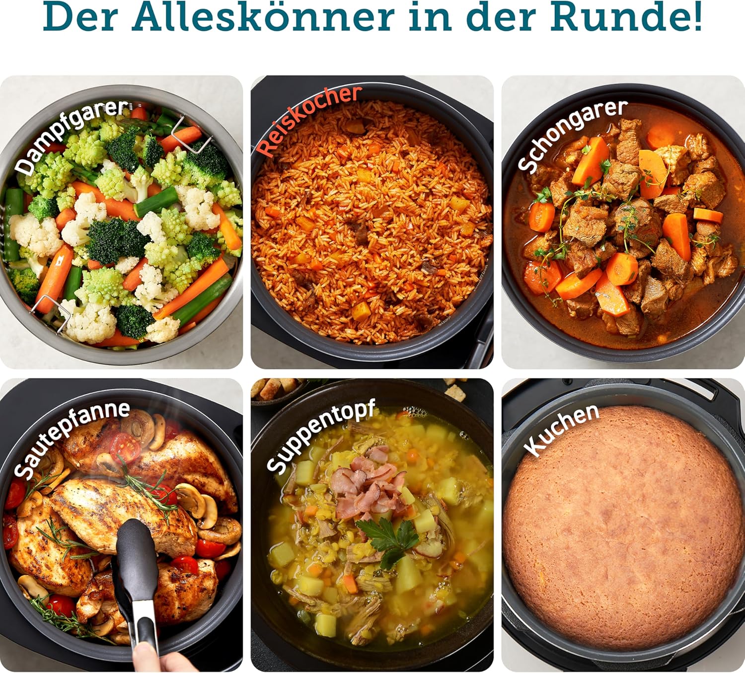 Nicht nur ein Reiskocher: Mit 17 Funktionen knnen Sie zwischen verschiedenen Reissorten und 3 Getreidesorten whlen. Auerdem knnen Sie zwischen Funktionen wie Dmpfen, Suppe, Konfitüre und Soe, Slow Cooker, Kuchen, Warmhalten, Verzgerungstimer und Schnellreis whlen