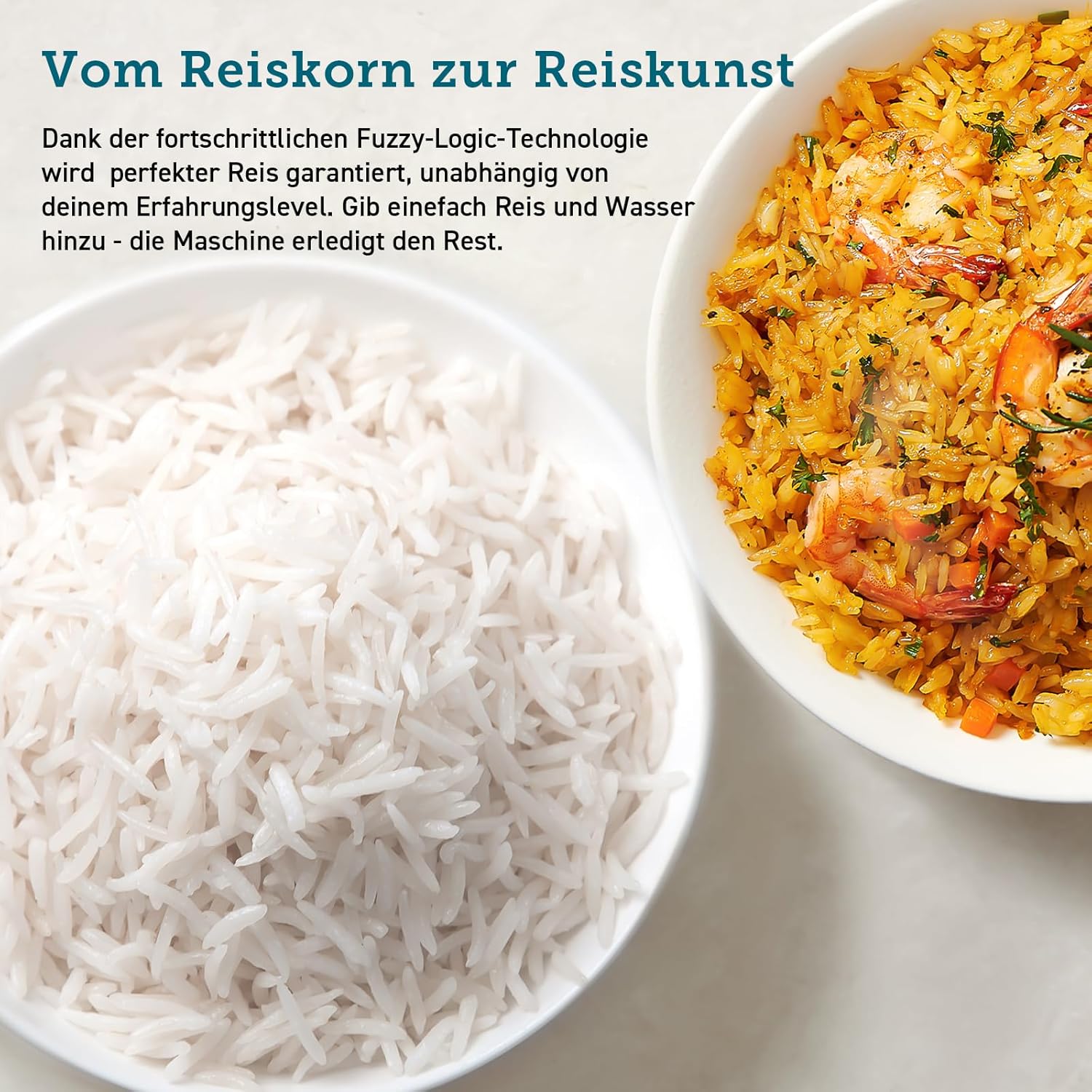 Ein echter Reisspezialist: Dank der Fuzzy-Logic-Technologie müssen Sie weder die Zeit noch die Temperatur selbst einstellen - der Reiskocher passt die 7 Kochstufen automatisch an die Reis- und Wassermenge an und sorgt so jedes Mal für kstlichen Reis