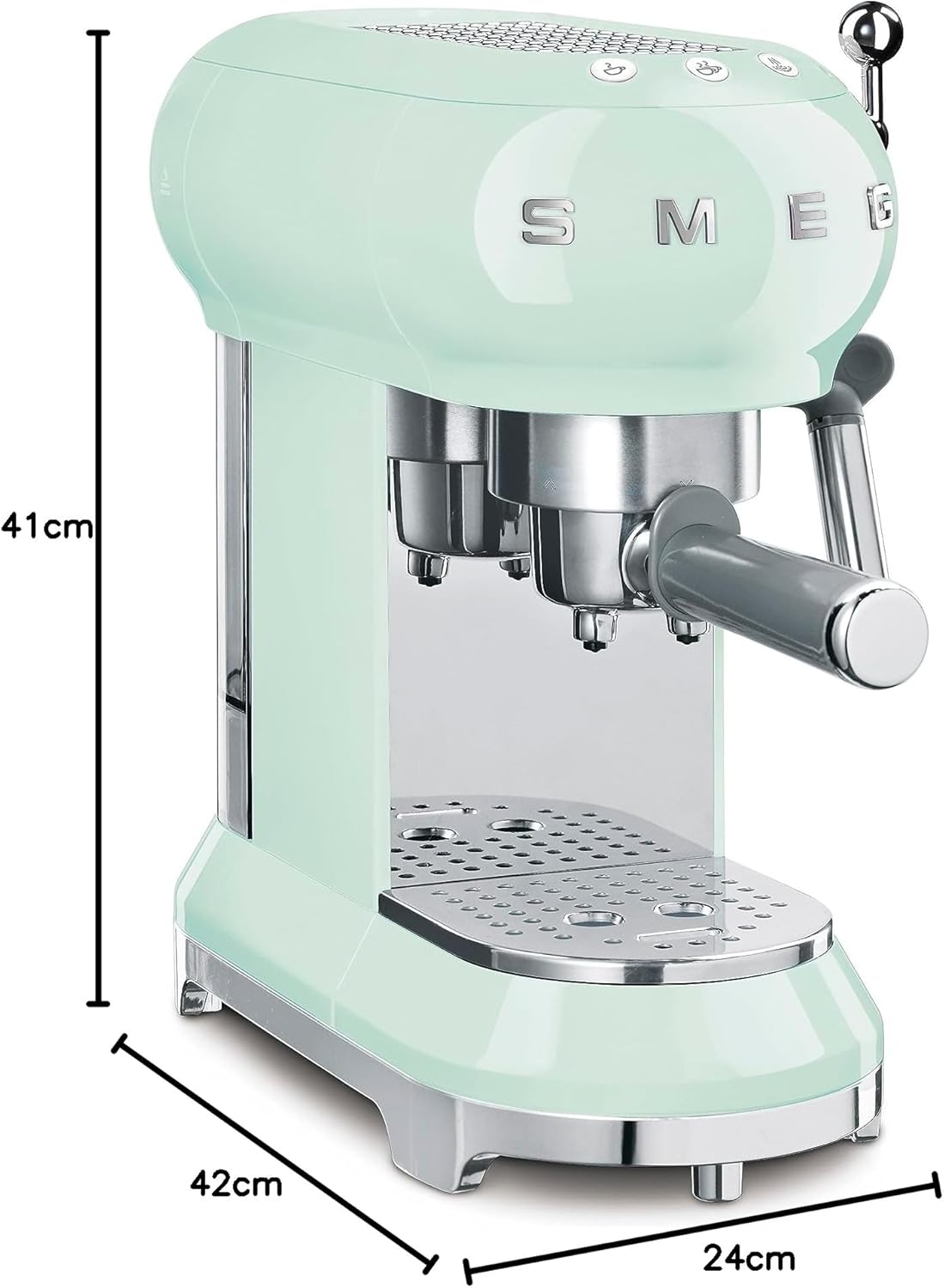 Erleben Sie den perfekten Kaffeegenuss mit der Smeg ECF01PGEU, einer manuellen Espresso-Kaffeemaschine, die Stil und Funktionalität vereint. Diese elegante Maschine in Pastellgrün bringt nicht nur einen Hauch von Retro-Charme in Ihre Küche, sondern überzeugt auch durch ihre herausragende Leistung.