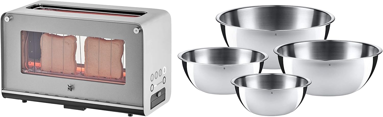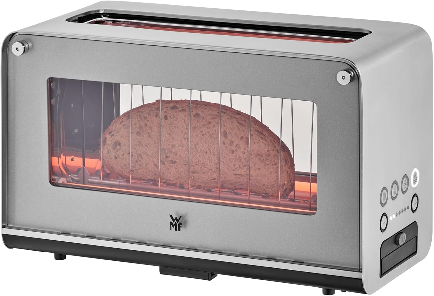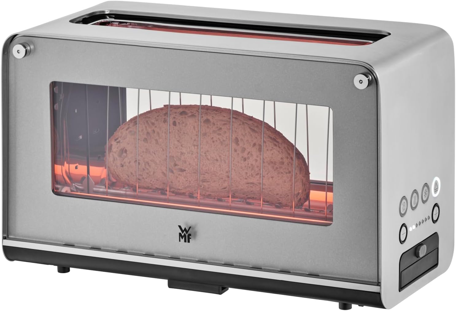 WMF Lono Toaster Glas mit Brtchenaufsatz, 2 Scheiben, XXL, motorisierte Toastaufnahme, Aufwrm-Funktion, 7 Brunungsstufen, Toaster edelstahl matt
