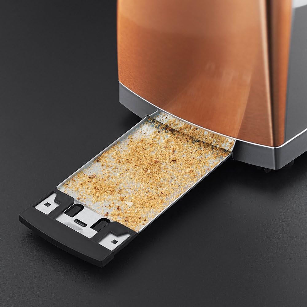 Der Russell Hobbs Toaster Luna in elegantem Edelstahl mit kupfernen Akzenten ist die perfekte Ergänzung für jede moderne Küche. Mit seinen extra breiten Toastschlitzen ist dieser Toaster ideal für verschiedene Brotsorten, von dicken Scheiben bis hin zu Bagels. Die Kombination aus stilvollem Design und Funktionalität macht ihn zu einem unverzichtbaren Küchenhelfer.