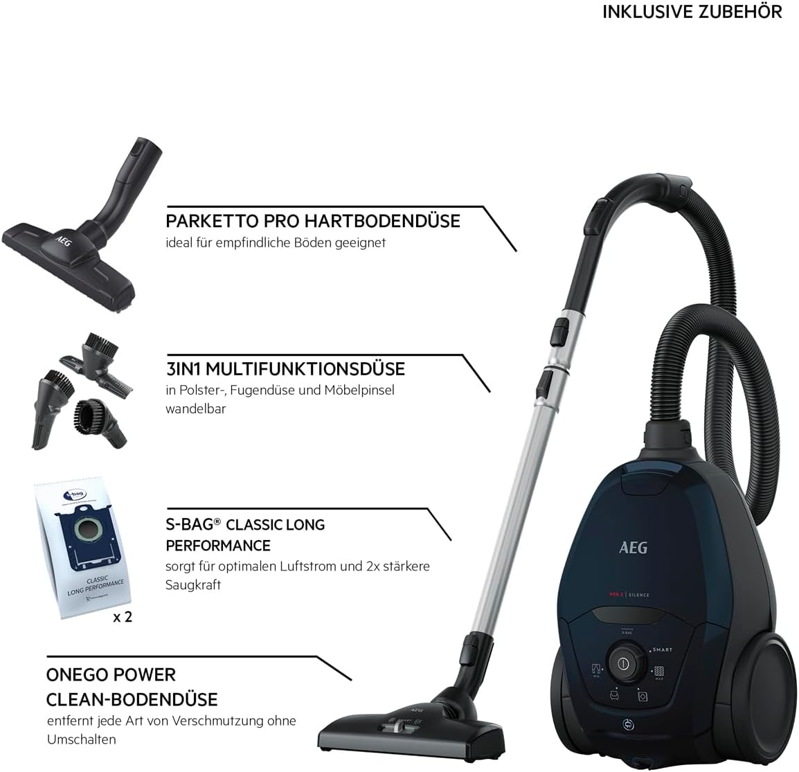 Ein herausragendes Merkmal dieses Staubsaugers ist die automatische Saugkraftregulierung. Diese Funktion passt die Saugkraft intelligent an den jeweiligen Untergrund an, sodass der AEG VX82-1-KO sowohl auf Teppichen als auch auf harten Böden extrem leise arbeitet. Sie können sich auf eine gründliche Reinigung verlassen, ohne dabei störende Geräusche zu verursachen.