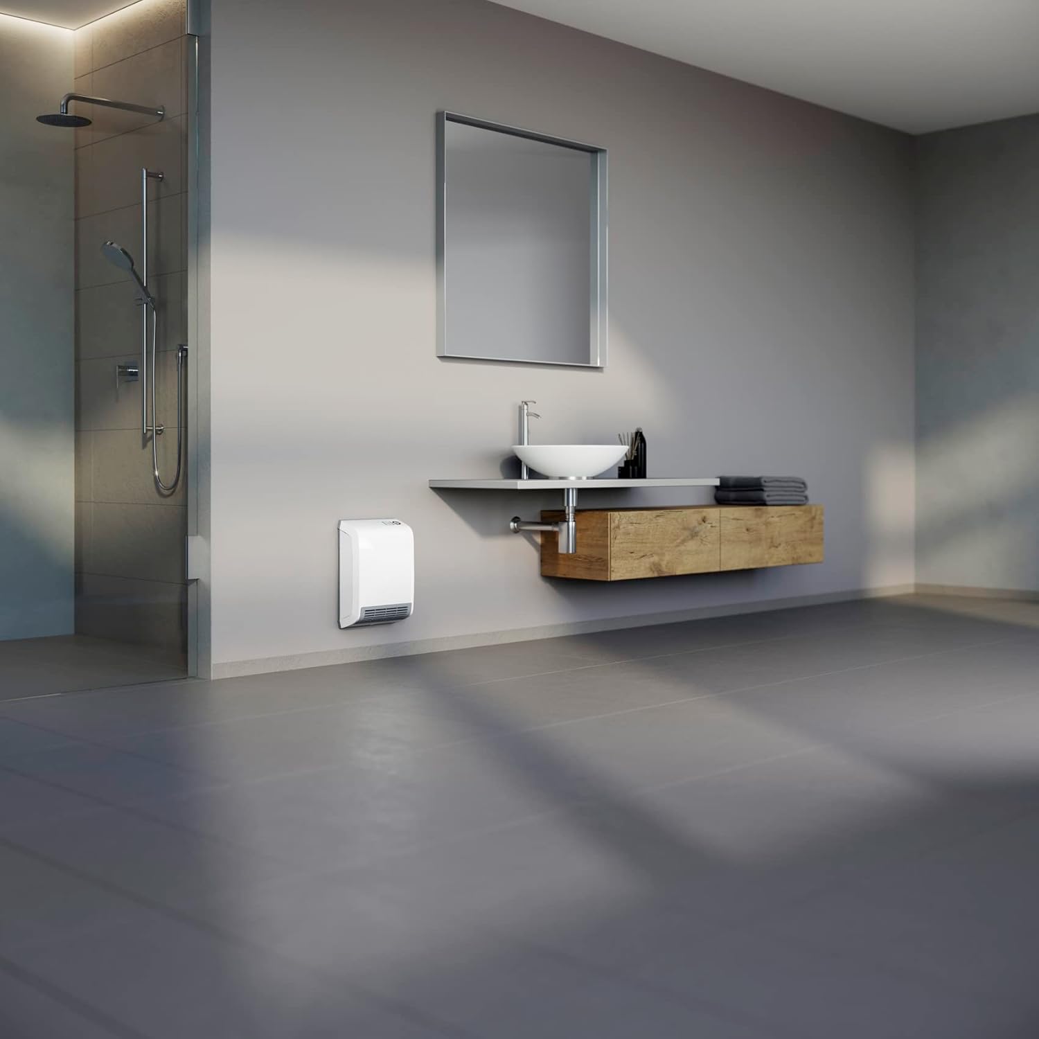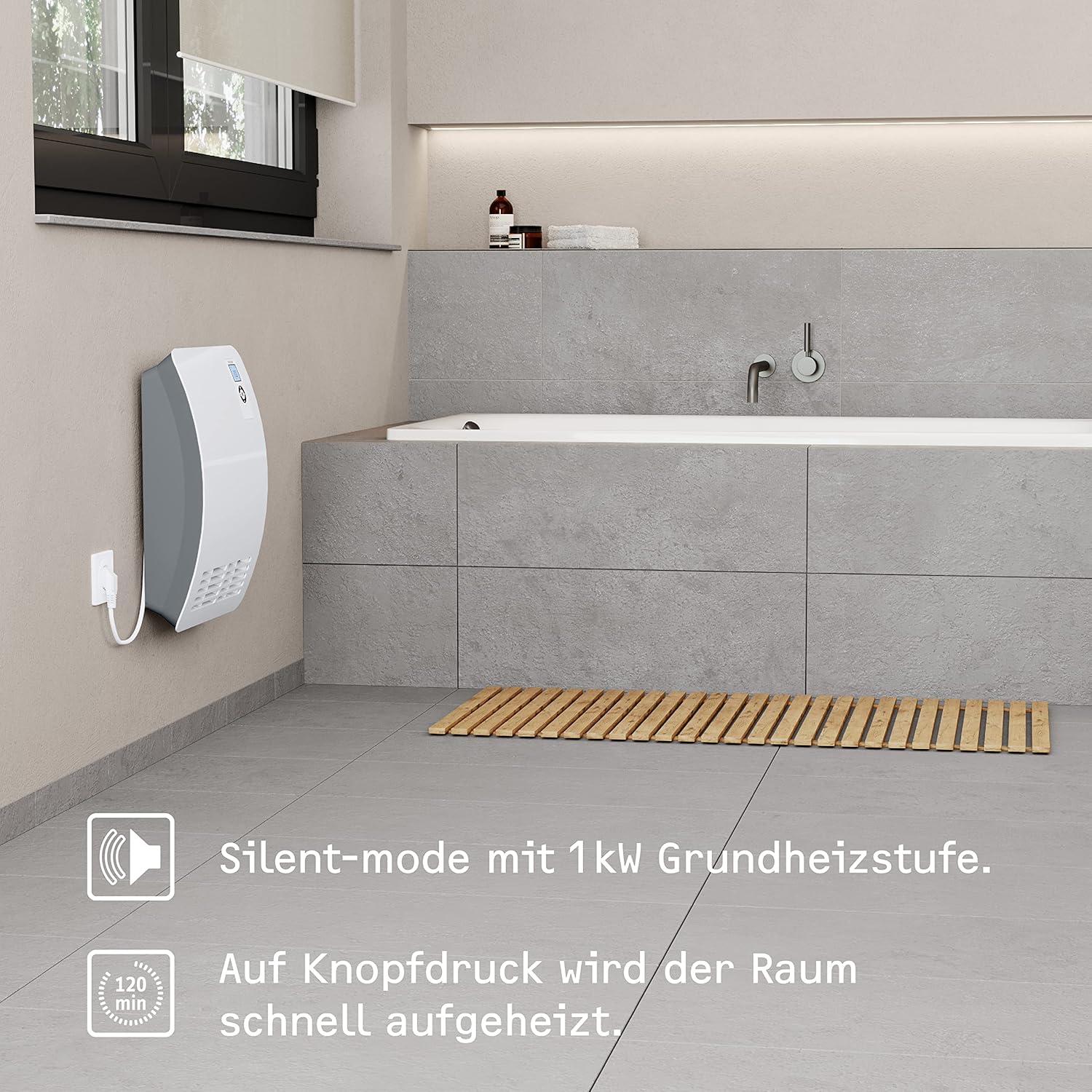 EINSATZBEREICH: Kompakter, wandhngender Schnellheizer im Kunststoffgehuse als Vollheizung im Bad oder als effiziente bergangs- und Ergnzungsheizung für eine schnelle und gleichmige Erwrmung der Raumluft.