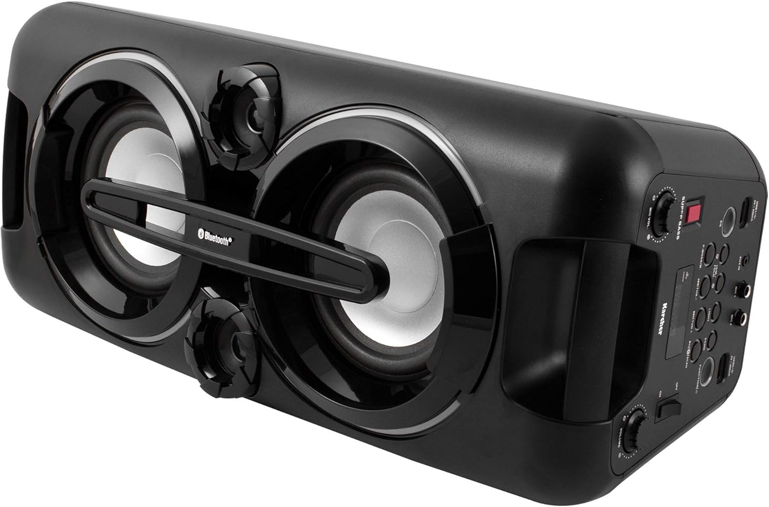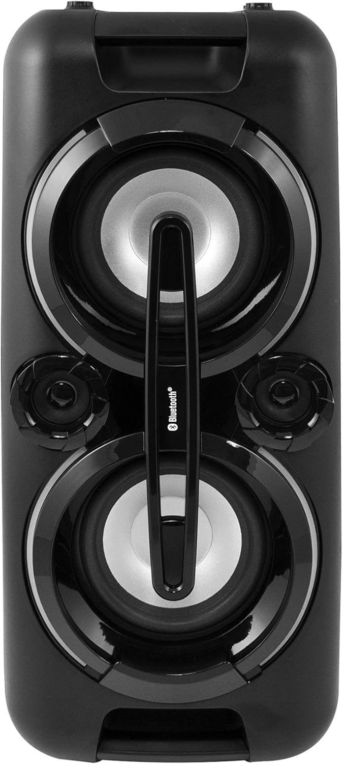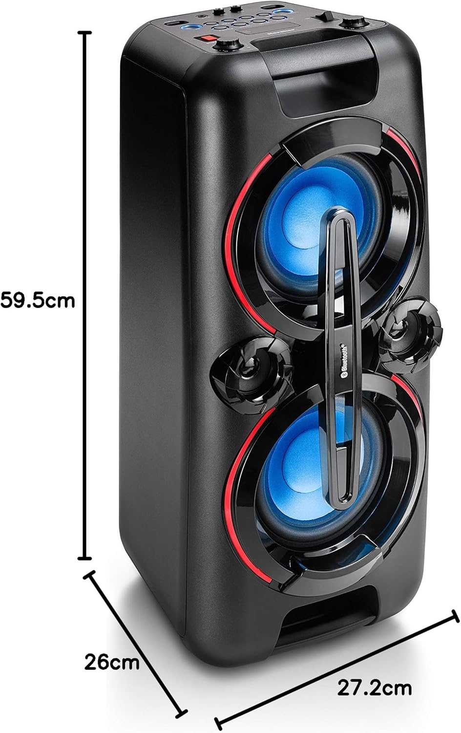 Karcher PS 4460 PartyBox in schwarz, Tragbarer Bluetooth Lautsprecher gro, Party Musikbox mit kraftvollem Bass und Lichteffekten, Mobile Box mit Akku, mit Radio, USB, inkl. Mikrofon