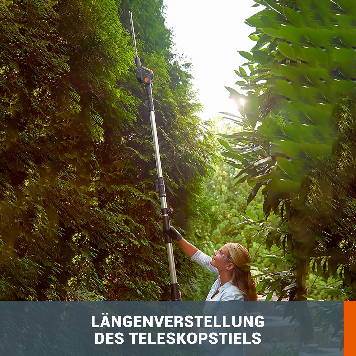 Entdecken Sie die WORX WG252E.9 Akku Teleskop Heckenschere – Ihre ideale Lösung für die Pflege von Hecken und Sträuchern in jedem Garten. Diese innovative Heckenschere kombiniert hohe Leistung mit durchdachtem Design, um Ihnen das Schneiden zu erleichtern und gleichzeitig Ihre Pflanzen zu schonen.