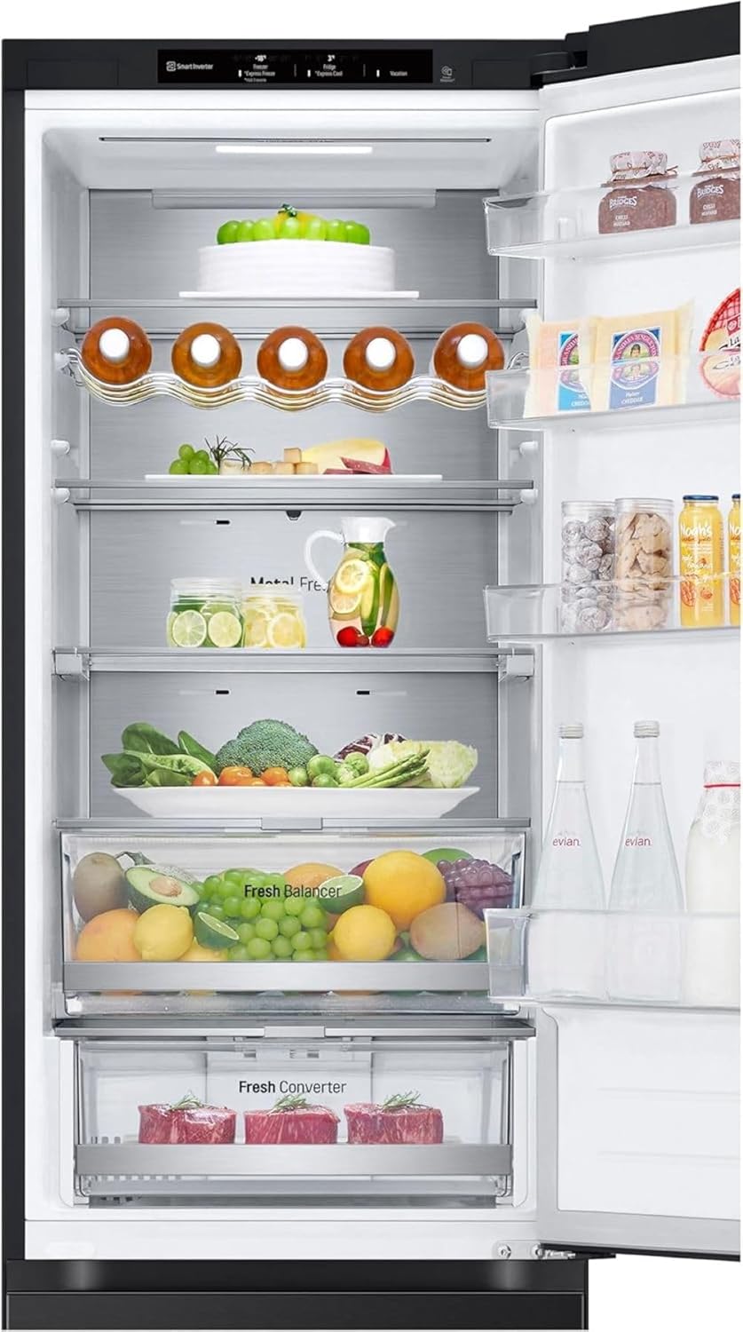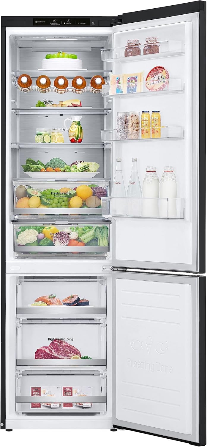 LG GBV22NCCEP Kühl-/Gefrierkombination – Smart Inverter Compressor, Total No Frost, Modern Flat Door Design, Matt Schwarz Metallic, Energieeffizienz A