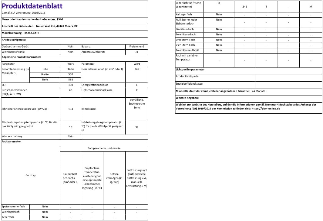 - PKM Stand Kühlschrank weiß Höhe 143cm x Breite 58,8cm KS242.0A++
