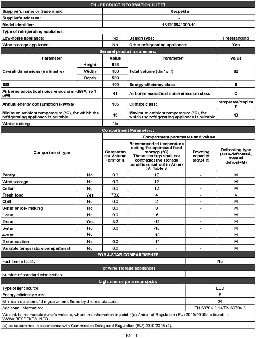 TECHNISCHE DATEN: Der leise Unterbaukühlschrank (max. 41 dB) weist die Maße (H) 83,8 x (B) 48 x (T) 56 cm & ein Gewicht von 23,5 kg auf – ausgezeichnet mit der Energieeffizienzklasse E