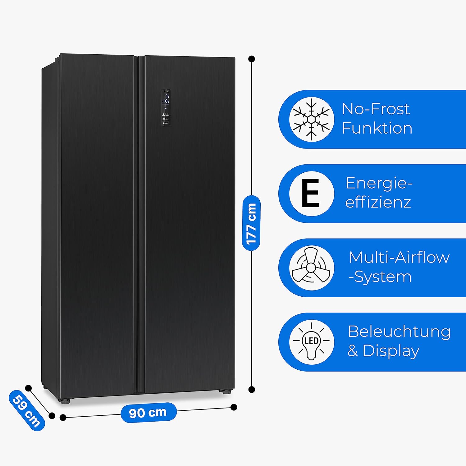 Bomann® Side by Side Kühl Gefrierkombination | No Frost | 442L Inhalt | Kühlschrank mit Gefrierfach | Kühlschrank mit MultiAirflow-Technologie | Verbrauch 287 kWh/Jahr | SBS 7344 black-inox