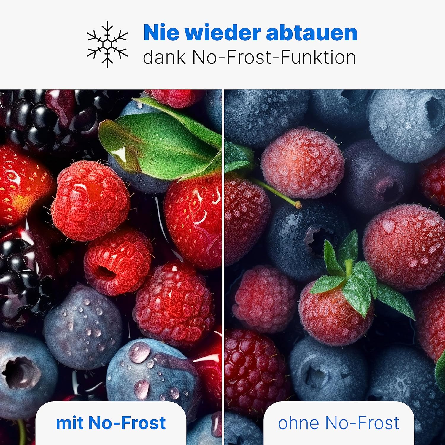 Nie wieder abtauen - Dank der Total No Frost-Funktion des Side by Side Kühlschrank von Bomann musst du dich nie wieder mit mühsamen Abtauvorgängen herumschlagen - stattdessen bleiben deine Lebensmittel und das Gefrierfach des Side by Side stets frisch und eisfrei