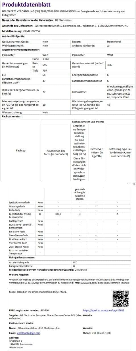 LG GLM71MCCSX, Klasse C, 386 L, Kühlgerät mit Touchdisplay, XXL-Stauraum, DoorCooling+, WiFi - Matte Black