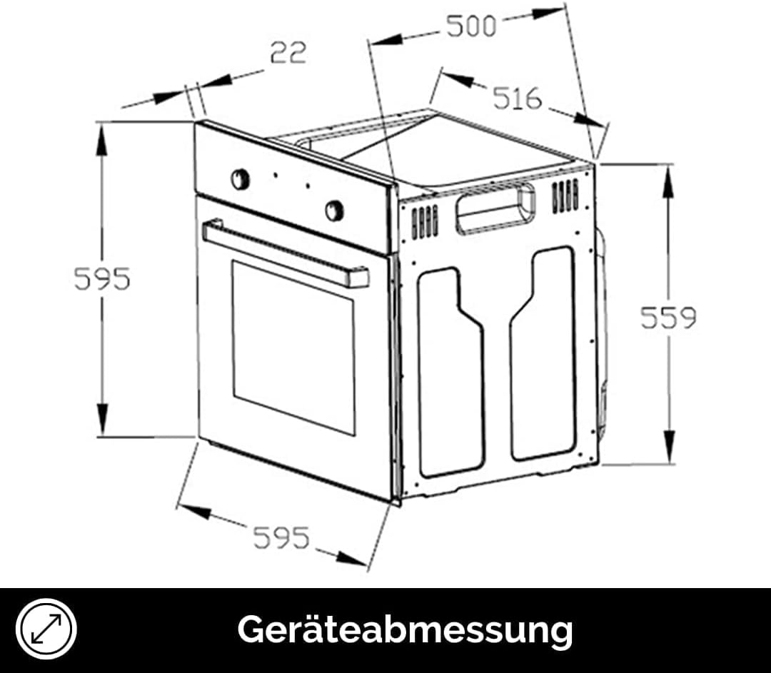 ✅ KOMPAKT: Der Ofen hat die folgenden Maße (HxBxT) 59,50 x 59,50 x 50,00 cm. Das Kochfeld hat die Maße (HxBxT) 5,00 x 58,00 x 51,00 cm.