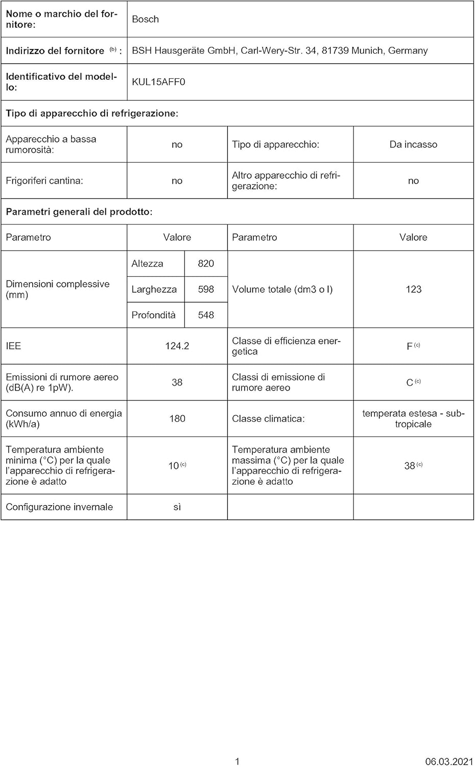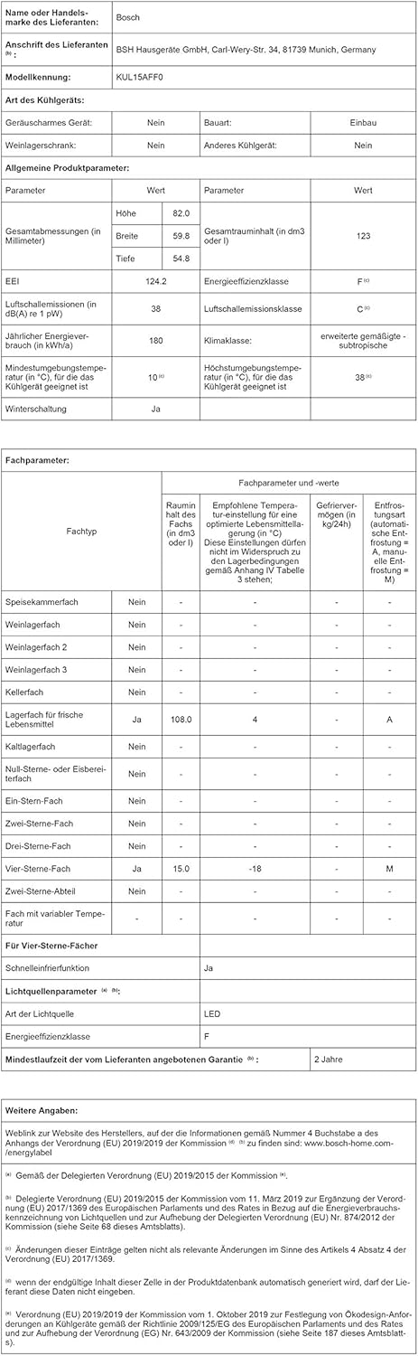Bosch KUL15AFF0 Serie 6 Unterbau-Kühlschrank, 82 x 60 cm Nische, 123 L, Flachscharnier, Made in Germany, LED-Beleuchtung gleichmäßige Ausleuchtung, MultiBox Lagerung von Obst und Gemüse