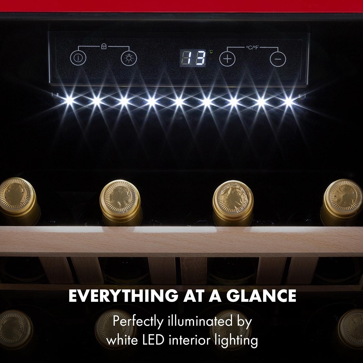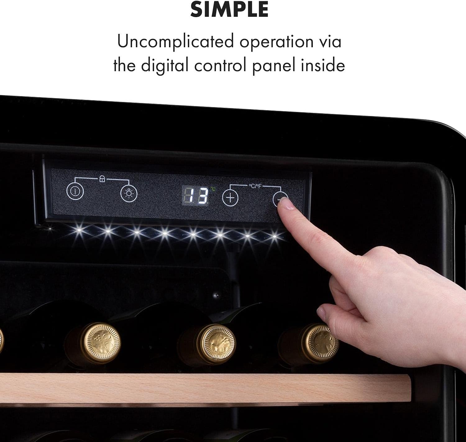 EINFACHE BEDIENUNG: Über das Touchpanel lässt sich die Temperatur einstellen, sodass deine Weine gekühlt und bereit zum Servieren sind. Das LCD-Display zeigt die Temperatur an, damit jeder Wein auf die perfekte Temperatur eingestellt werden kann.