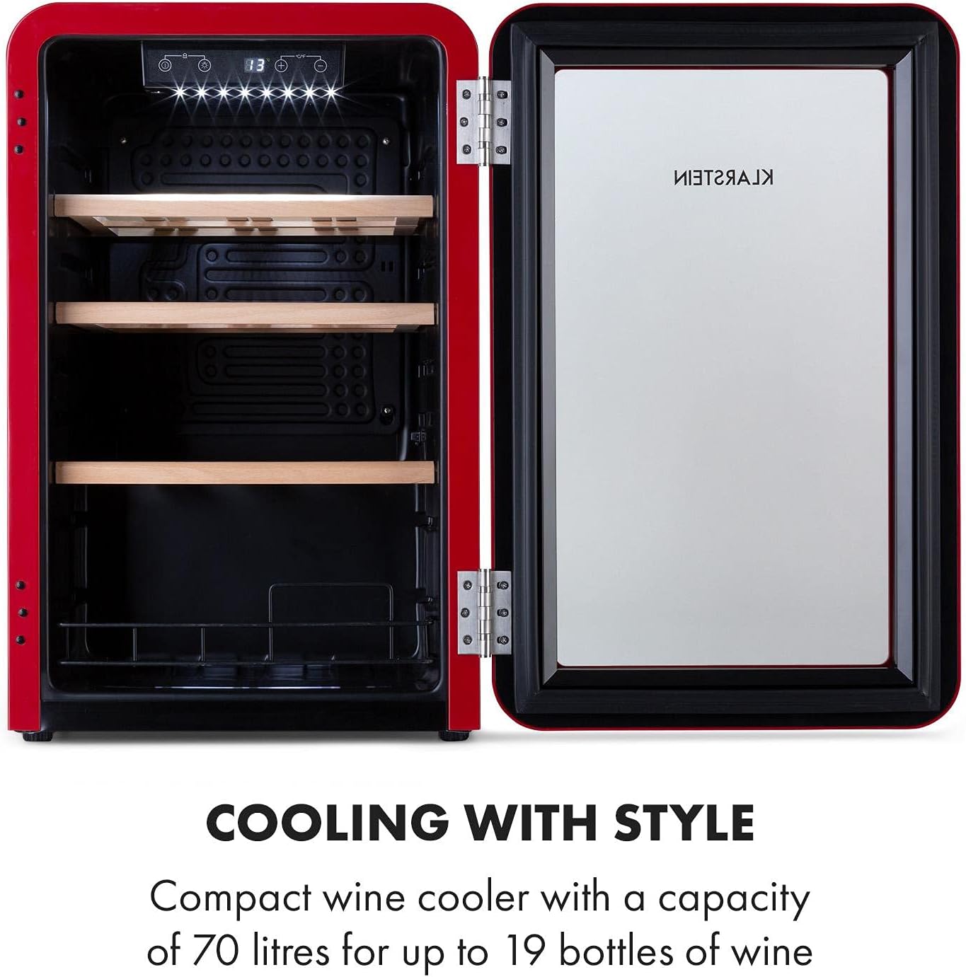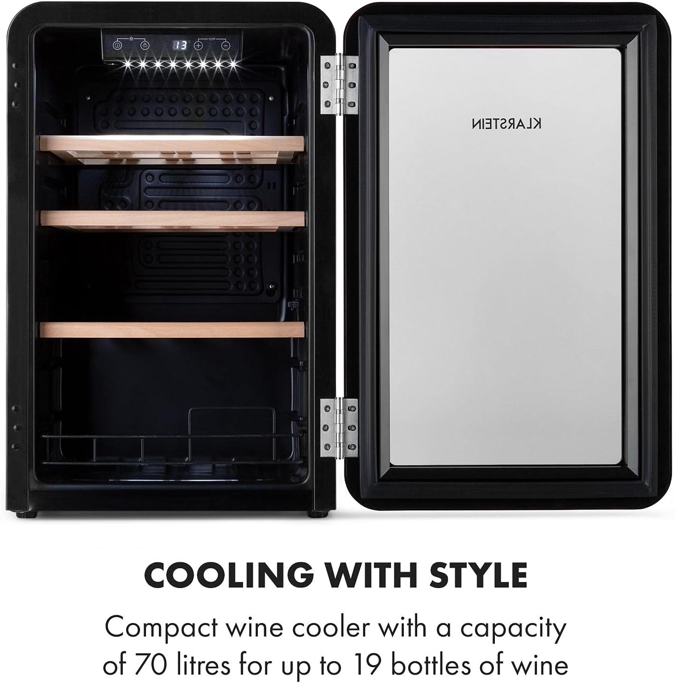 PRÄSENTIERE DEINE EXQUISITE WEINSAMMLUNG: In diesem Kühlschrank kannst du bis zu 19 Flaschen deiner besten Weine lagern. Unser Getränkekühlschrank sorgt für die richtige Temperatur, damit sich der Geschmack und das Aroma bestens entfalten können.
