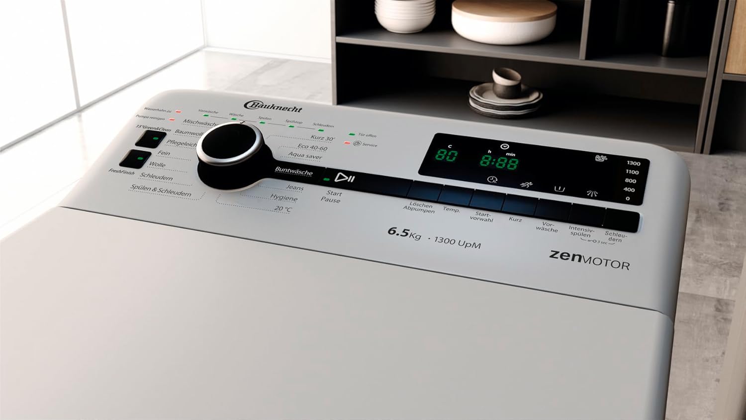 Bauknecht WMT Silver 6513 D4 Toplader-Waschmaschine/ 6,5 kg/ 1300 UpM/Vollwasserschutz/Autom.-Trommelpositionierung/SoftOpening/ 15° Green&Clean/Kurz 30/ Aqua Saver/Extra Spülen/Startzeitvorwahl