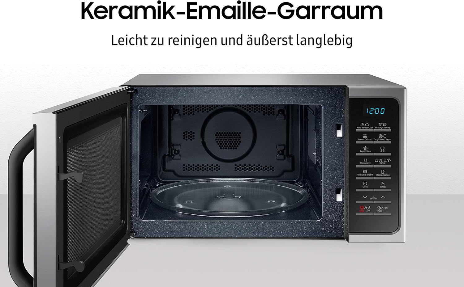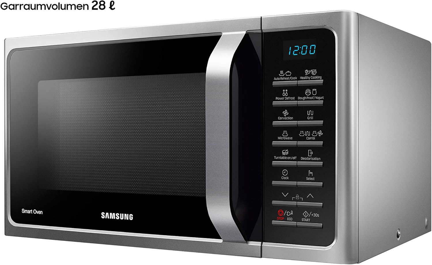Samsung MC28H5015AS/EG Kombi-Mikrowelle mit Grill und Heißluft / 900 W / 28 L Garraum (Extra groß) / 51,7 cm Breite / Hefeteig-/Joghurt-Programm / silber