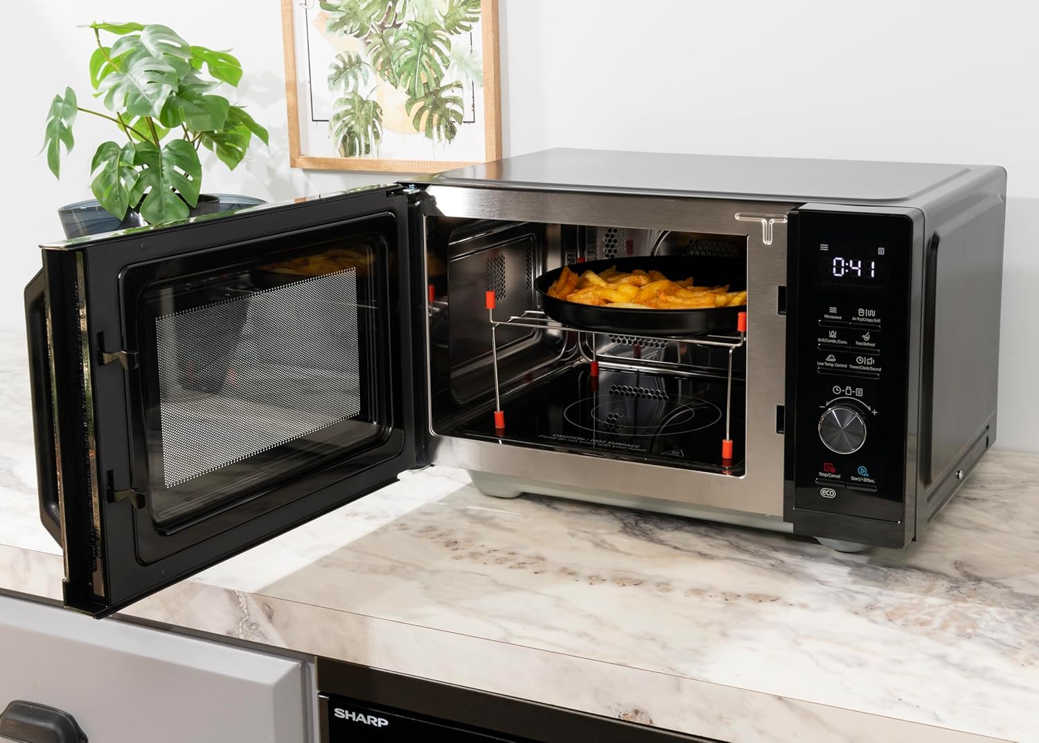 Sharp RCA271TB 5-in-1 Airfry-Mikrowelle 900W, Grill 1000 W, Heißluft & AirFry-Funktion, Konvektion 2100W, 27 L, 28 Autom.pr., Gewicht und zeitgesteuertes Auftauen, Schwarz