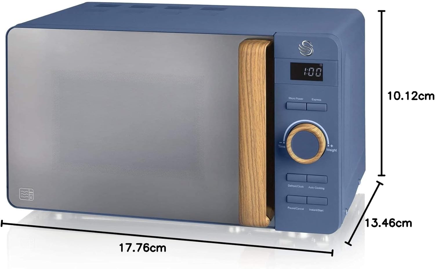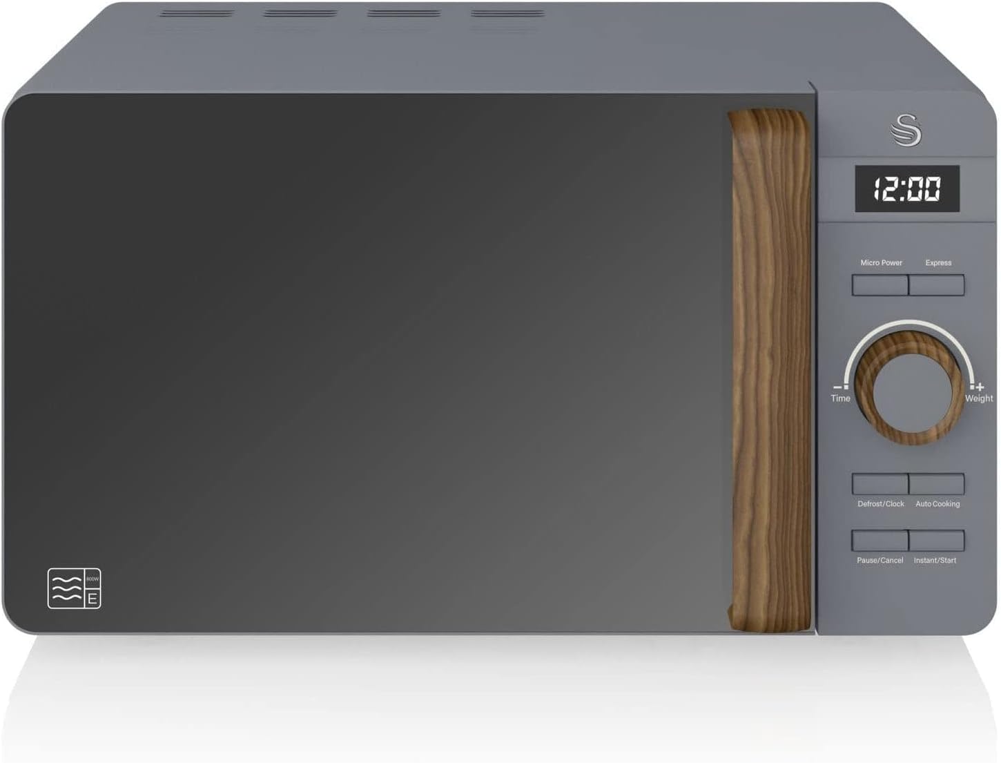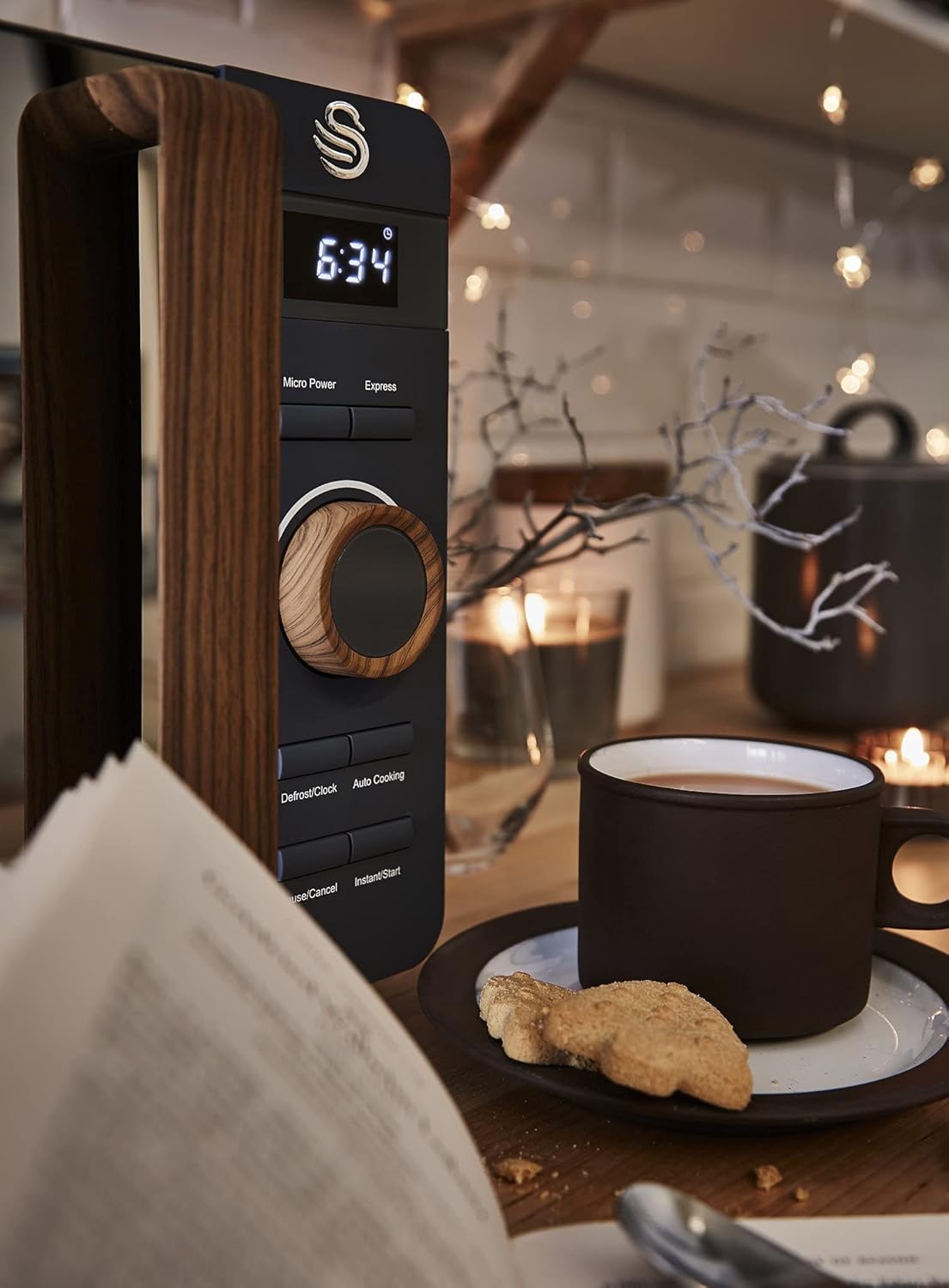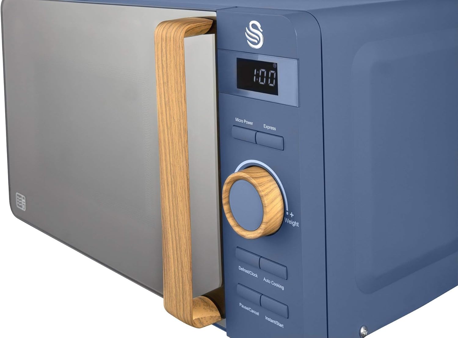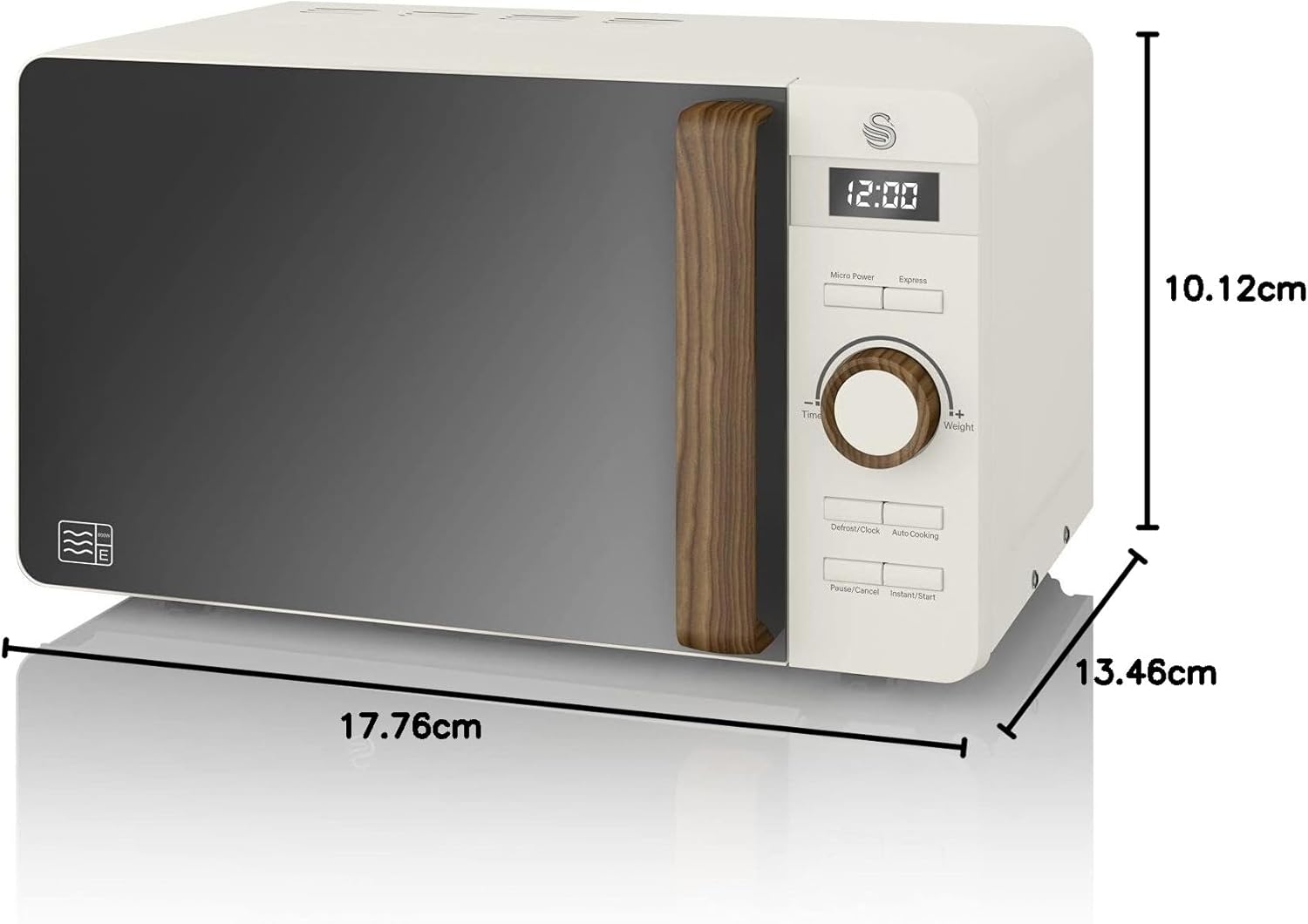 Swan Nordic SM22036WHTN Digitale Mikrowelle, Griff in Holzoptik, Gehäuse mit weicher Haptik und matter Oberfläche, 800 W, Baumwollweiß