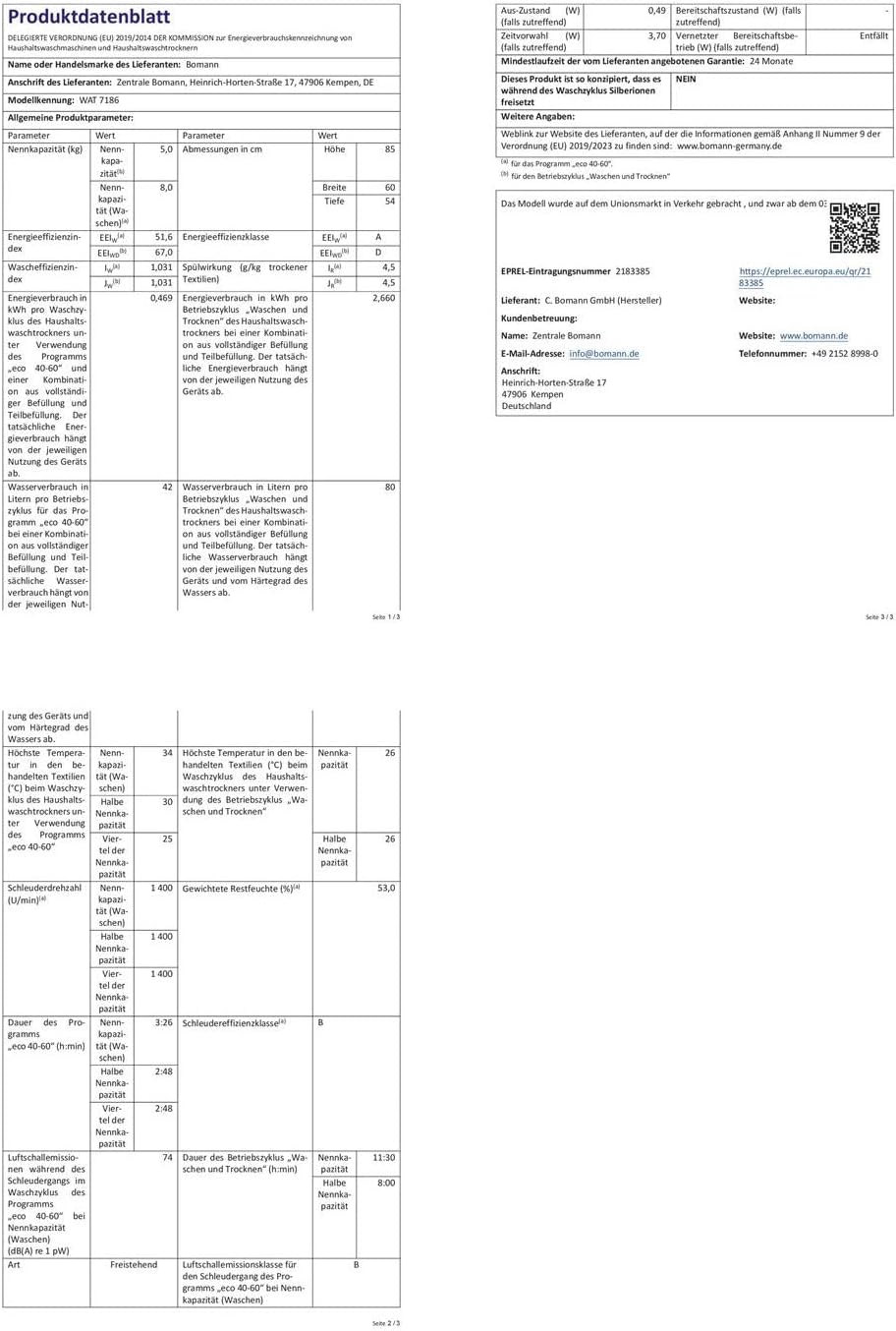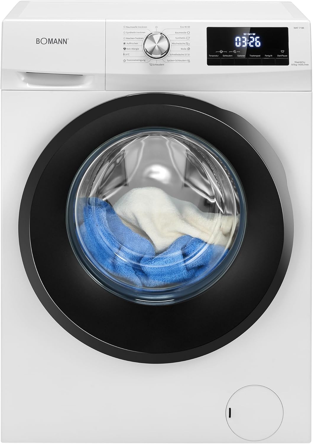 Bomann® Waschtrockner | Waschen und Trocknen in einem Durchgang | 8 kg Waschen, 5 kg Trocknen | Invertermotor | 1400 U/Min | Dampffunktion | Waschmaschine mit Trockner integriert | WAT 7186 weiß