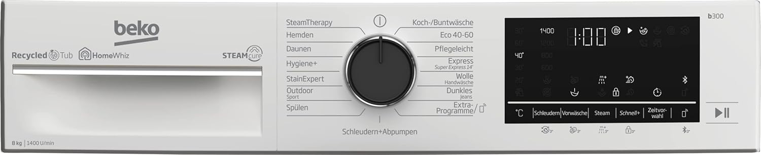 Stark gegen Flecken und Falten: die SteamCure-Technologie von Beko geht besonders hartnäckigen Flecken mit Dampf an den Kragen und schützt zugleich vor Faltenbildung.