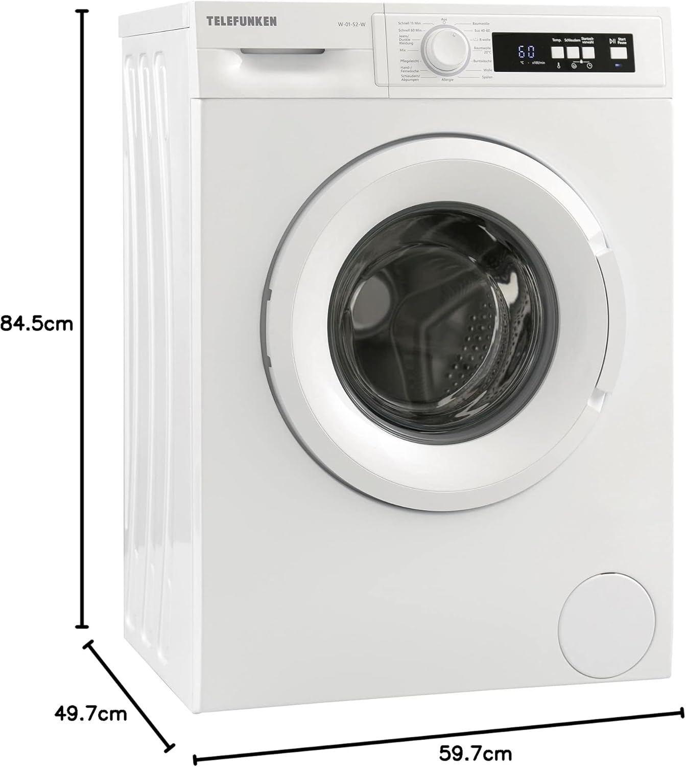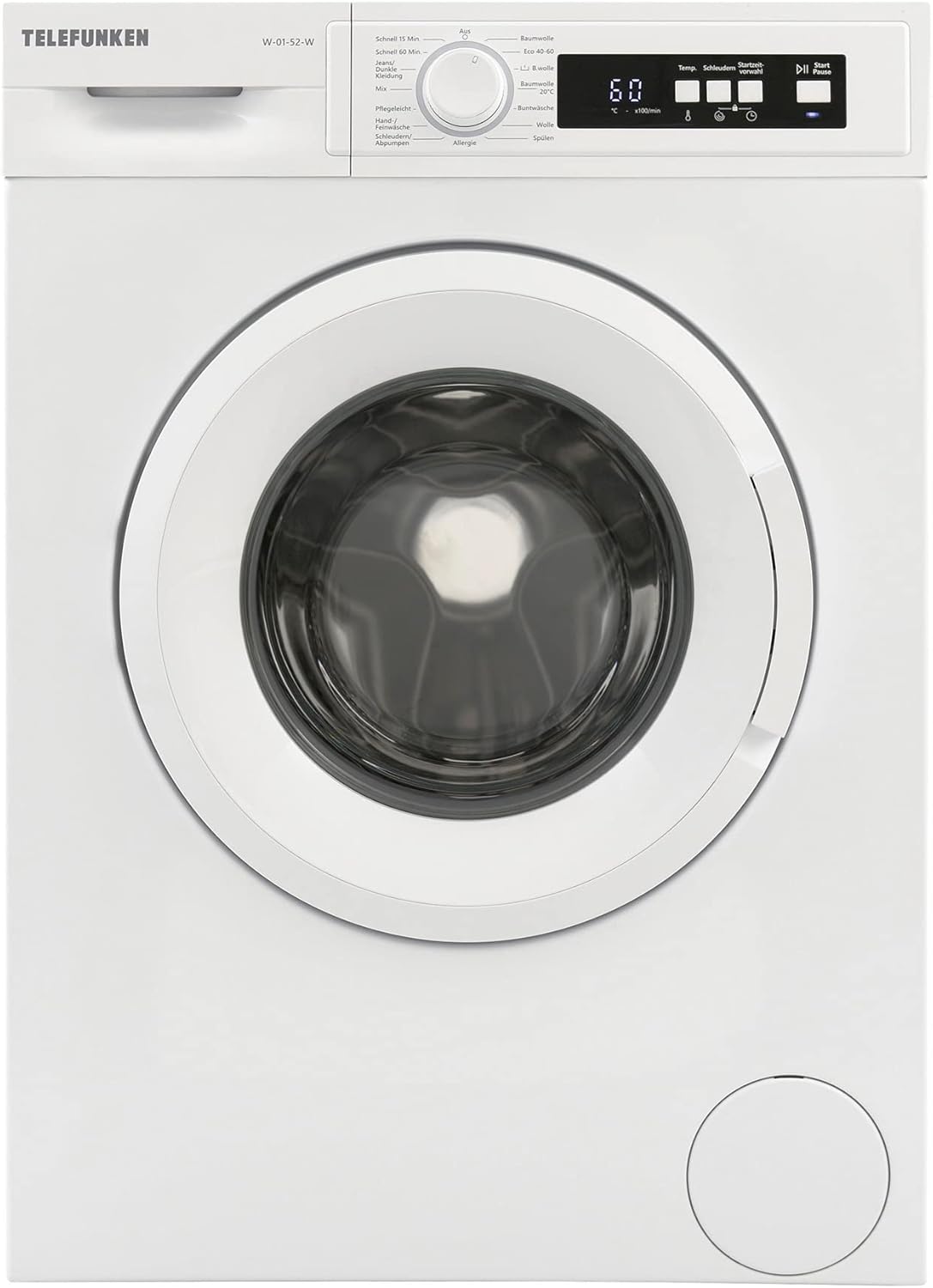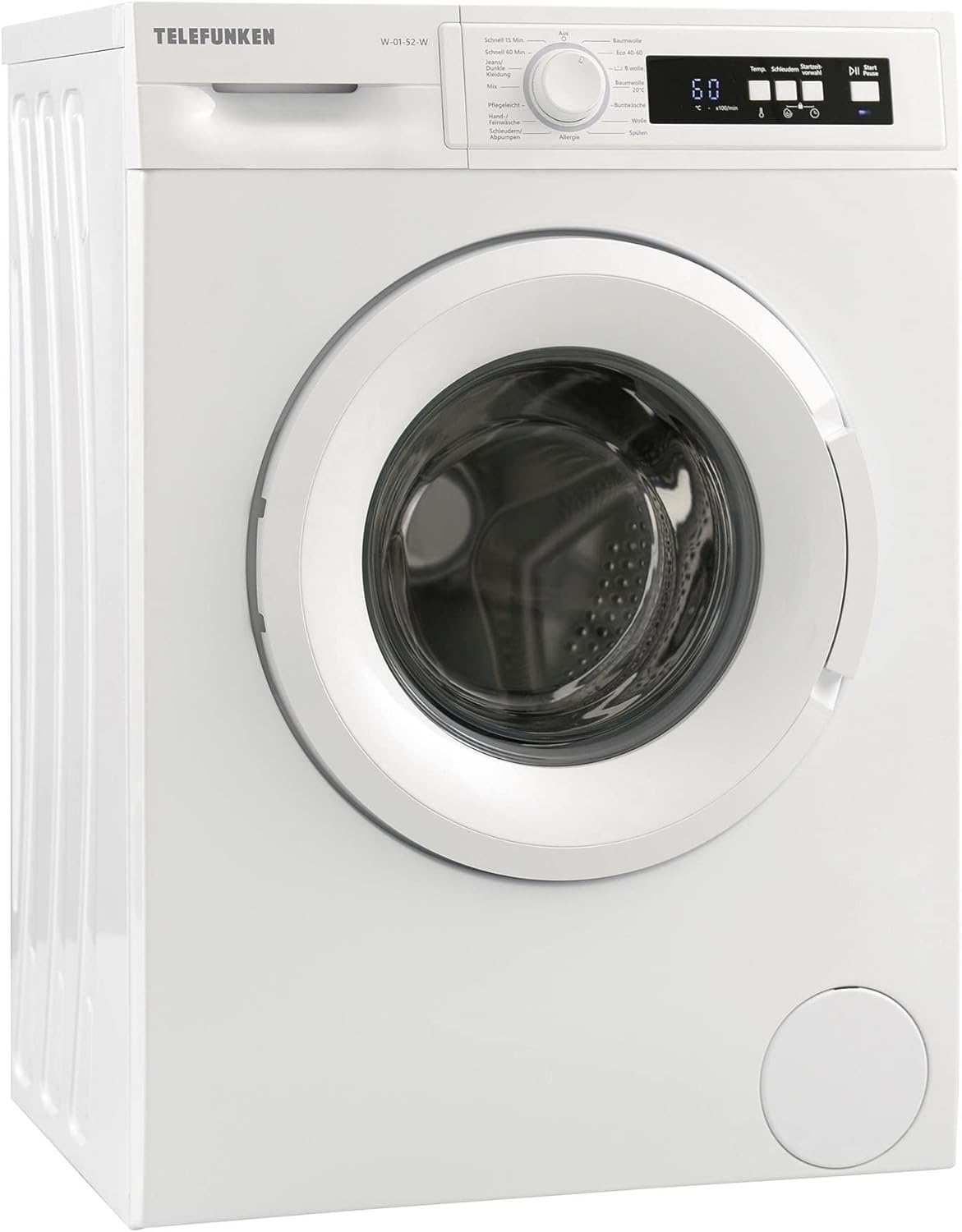 Telefunken W-01-52-W Waschmaschine (5 kg / 1000 U/Min) mit Mengenautomatik und Überlaufschutz / 15 Programme/Startzeitvorwahl/weiß