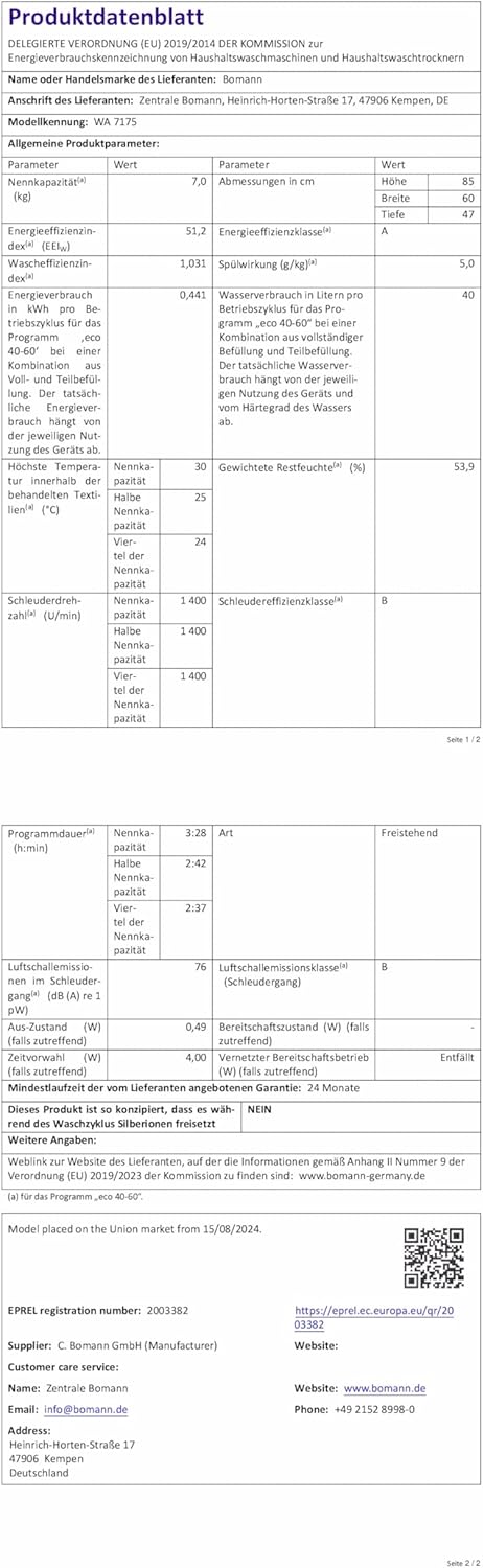 Mit einem Fassungsvermögen von 7 kg und 15 Waschprogrammen, sowie Zusatzoptionen wie Vorwäsche und Extra Spülen, bietet diese Waschmaschine eine Vielzahl von Möglichkeiten für eine gründliche Reinigung Ihrer Kleidung