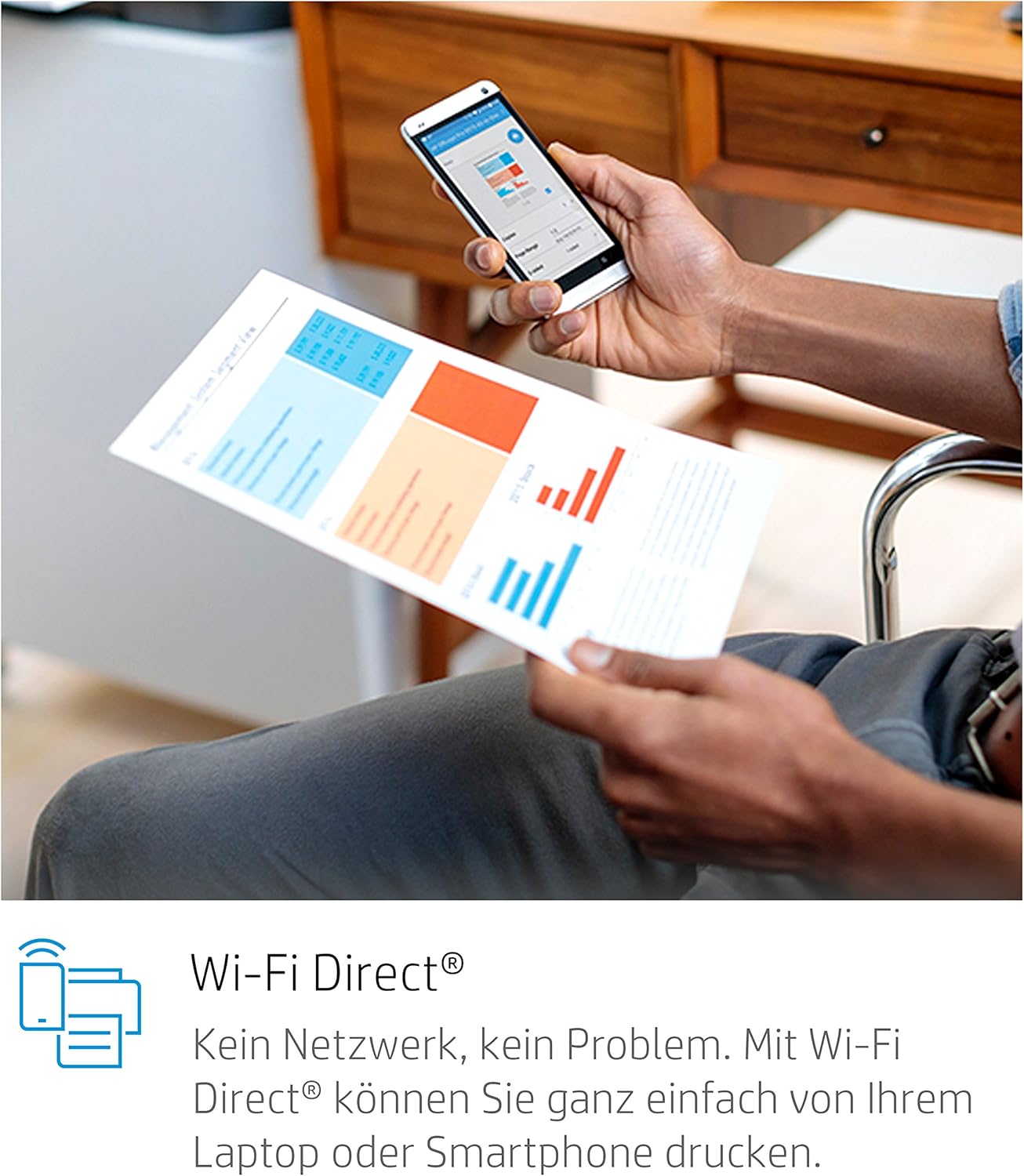 Einfache 3-Schritte Installation mit HP Easy Start, einer automatisierten Download- und Installationsanwendung für HP Drucker: 1. HP Smart App installieren 2. Drucker-WLAN aktivieren 3. Drucker mit HP Smart App koppeln; Geführte Unterstützung mit gratis Support Hotline (DE: 06929993434 / AT: 013602774402)