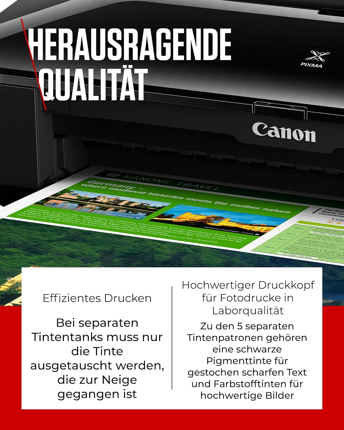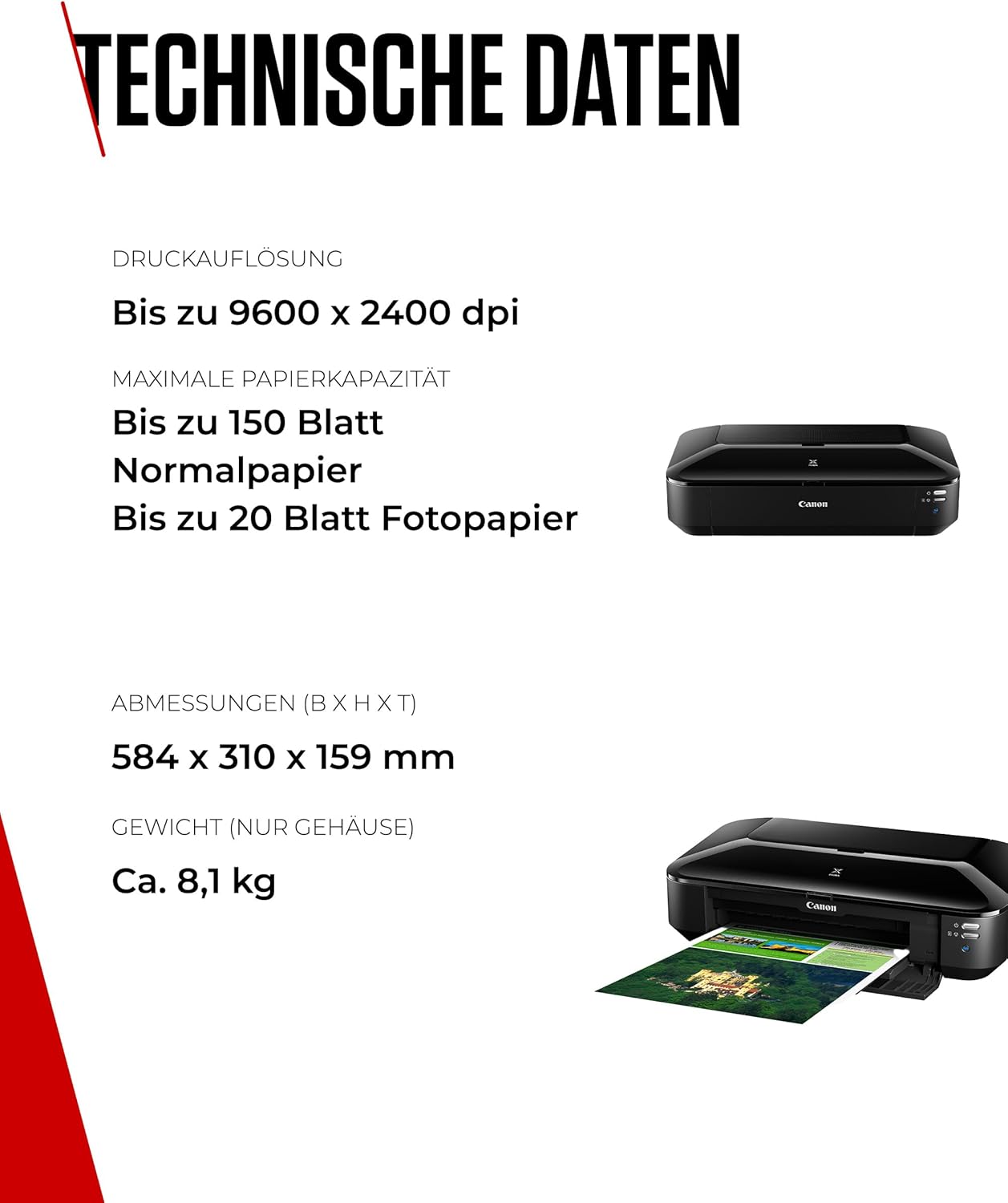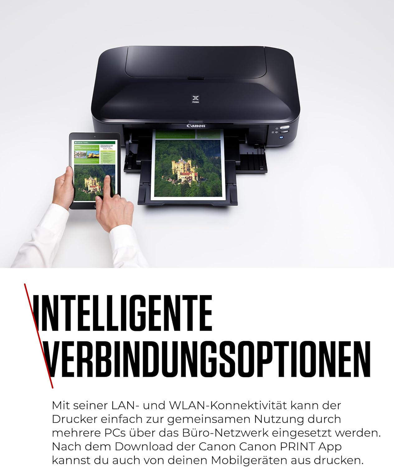 Canon PIXMA iX6850 Drucker Farbtintenstrahl Multifunktionsgerät DIN A3+ (Bürodrucker, Fotodruck, Textdruck, 9.600 x 2.400 DPI, WiFi, WLAN, USB, 5 Separate Tinten, Direktdruck, Print App) schwarz