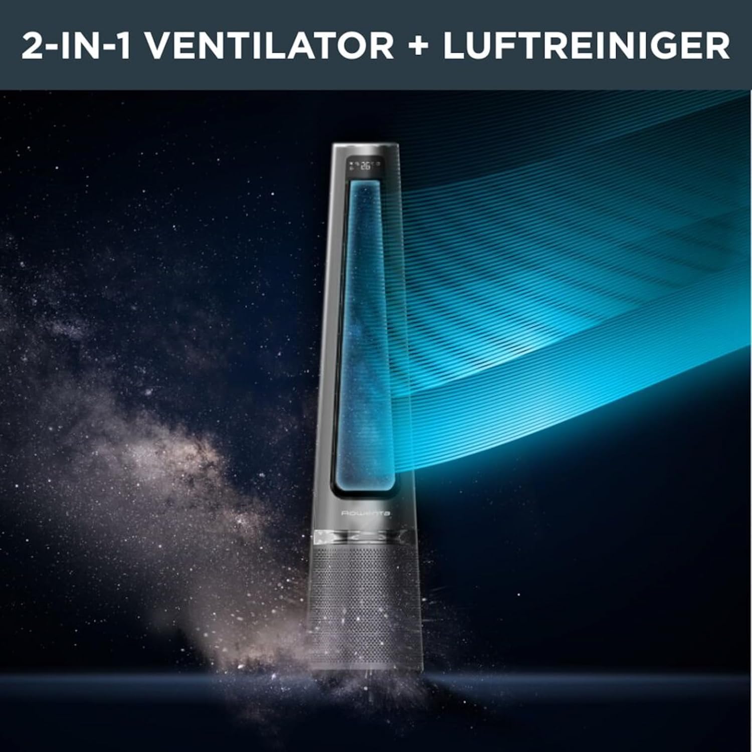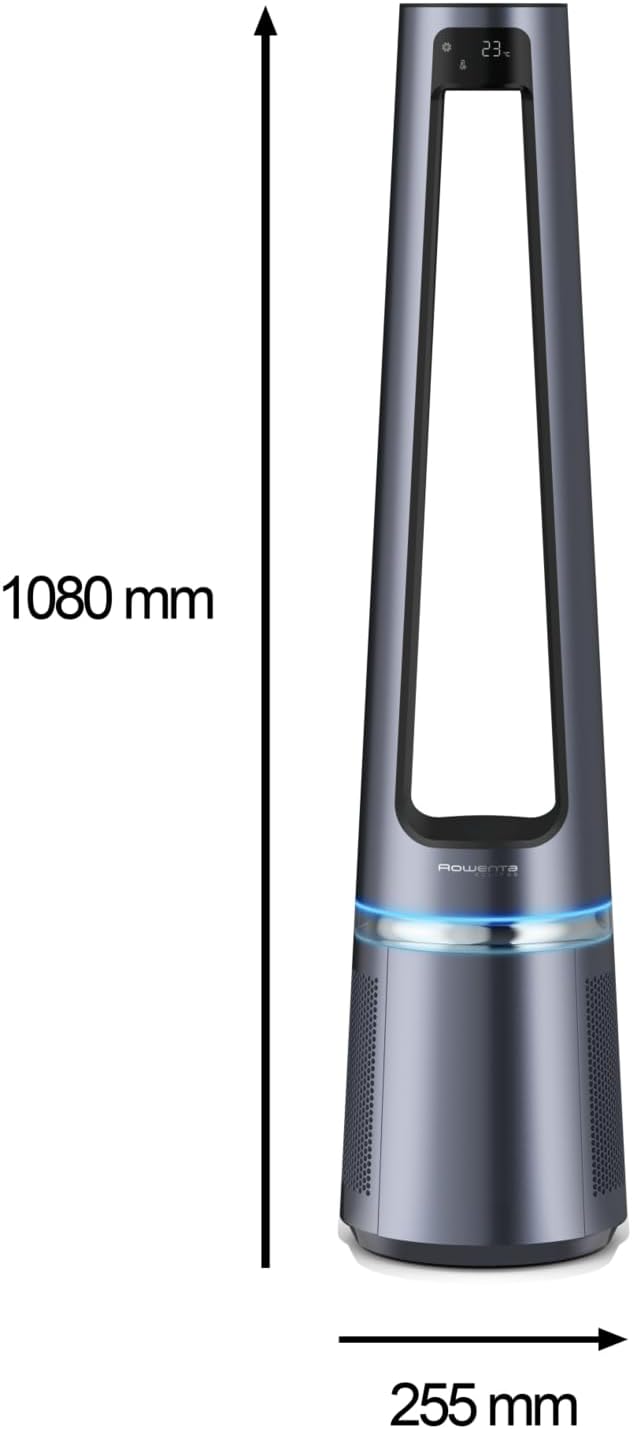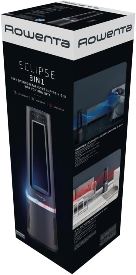 Rowenta QU5062 Eclipse 3in1 Luftreiniger, Heizlüfter, Ventilator, filtert 99,9% der Partikel, für 30 m2 Raumgröße, schnelle Heizung bis zu 35°C, automatischer Tag- und Nachtmodus, Schwarz/Grau