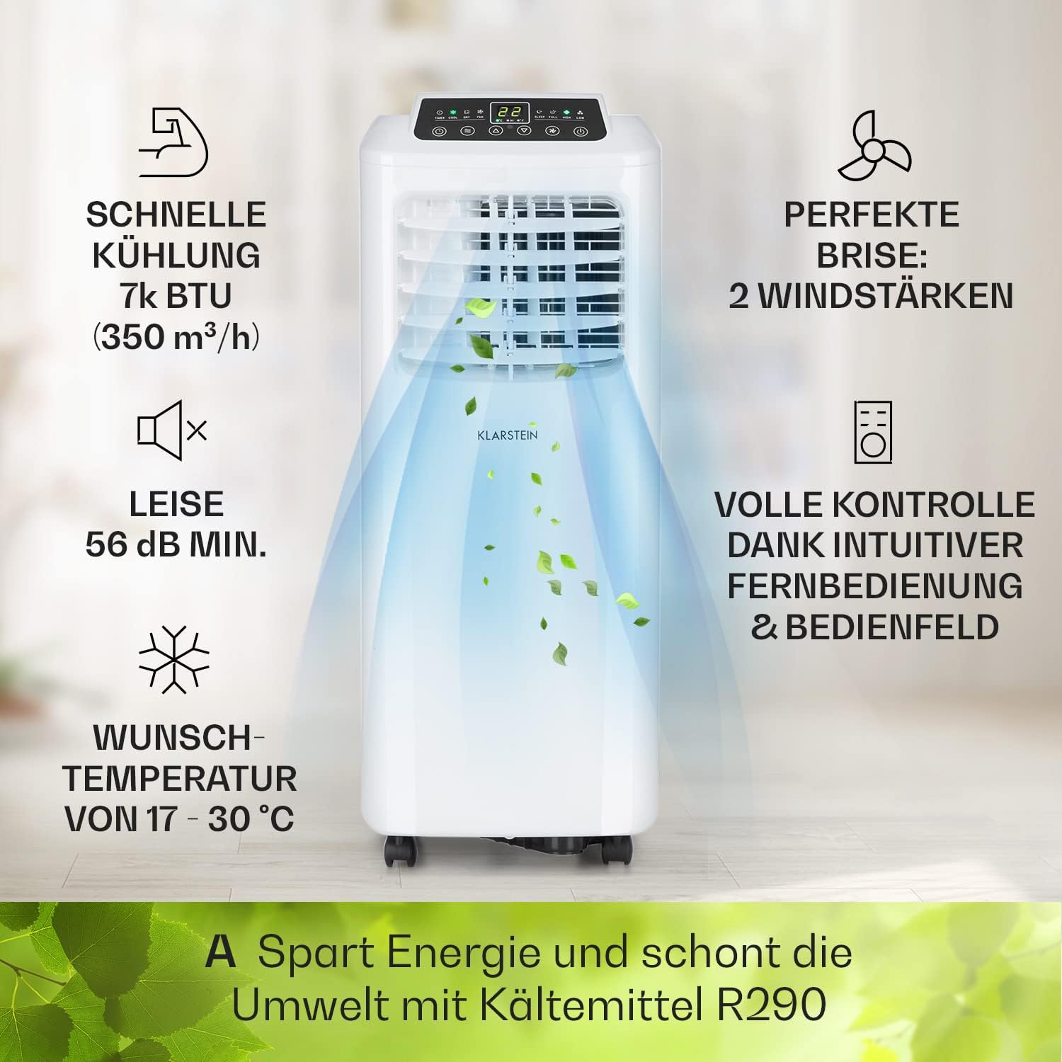 Klarstein Klimaanlage, 4-in-1 Klimagerät, Entfeuchter, Ventilator & Nachtmodus, Mobile Klimaanlage mit Abluftschlauch, App-Steuerung, Air Conditioner für Räume bis 44 m², 9000 BTU, Weiß