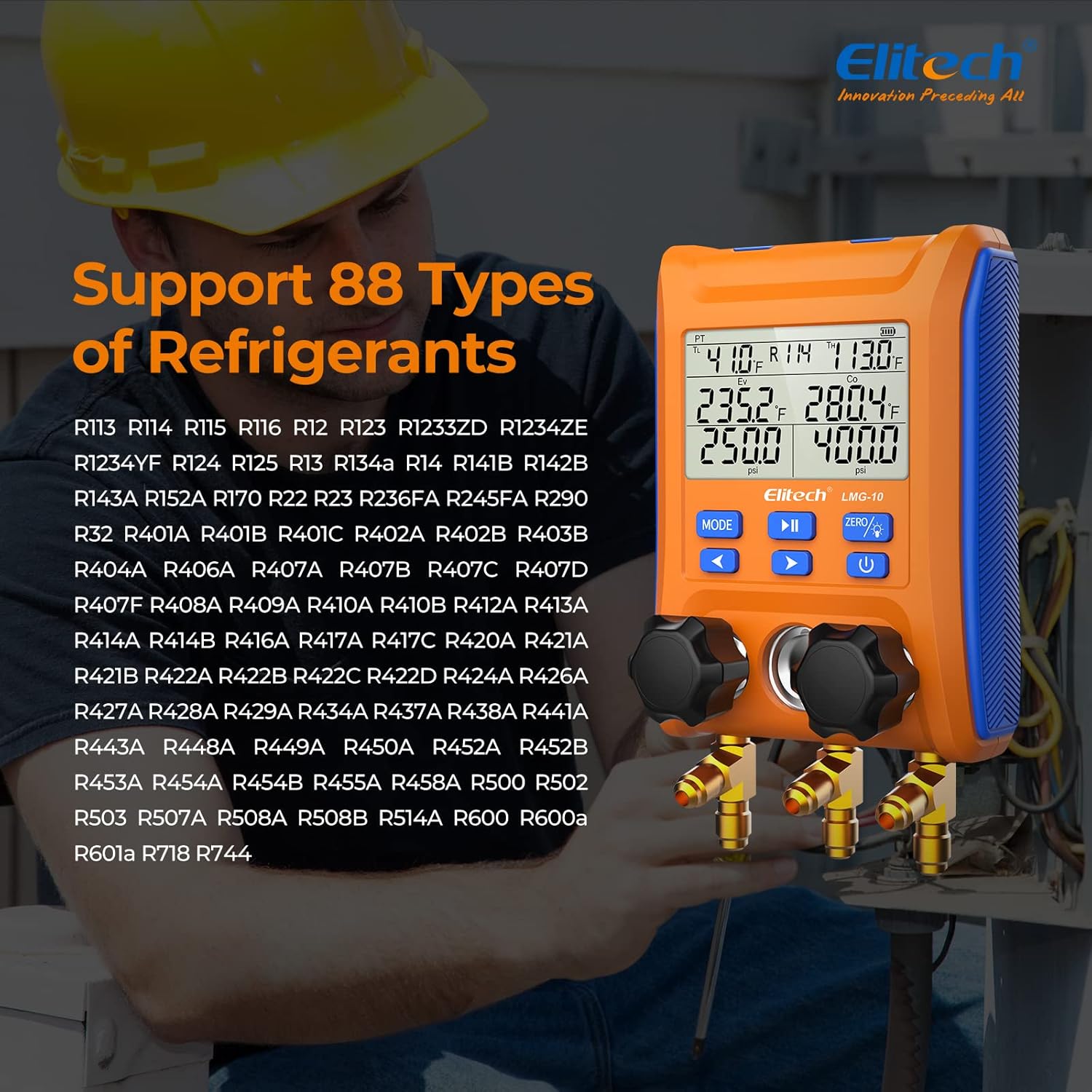Elitech Kältetechnik die Monteurhilfe Manifold Gauge Set, Hochpräzises Vakuum Drucktemperatur Lecktester Tester Digitales Messgerät für Kühlschränke LMG-10