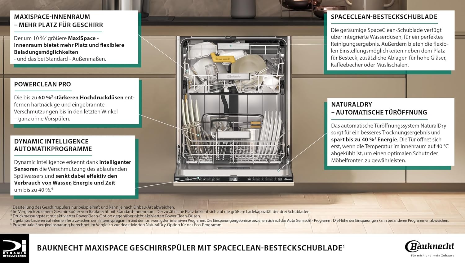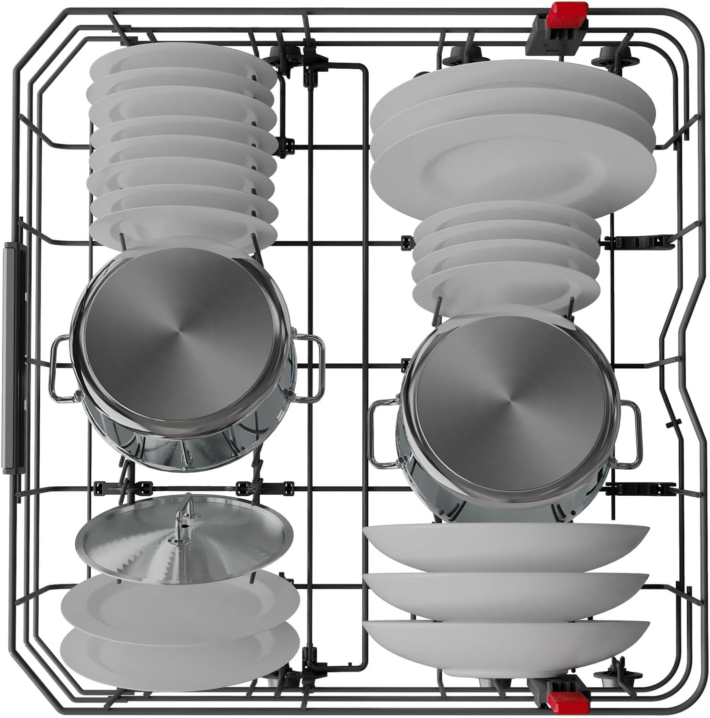 POWER CLEAN - Die stärkeren Hochdruckdüsen entfernen hartnäckige und eingebrannte Verschmutzungen bis in den letzten Winkel – ganz ohne Vorspülen. Und mit den praktischen Halterungen können Töpfe, Pfannen und Auflaufformen hochkant platziert werden und erhöhen damit die Beladungskapazität im Unterkorb.