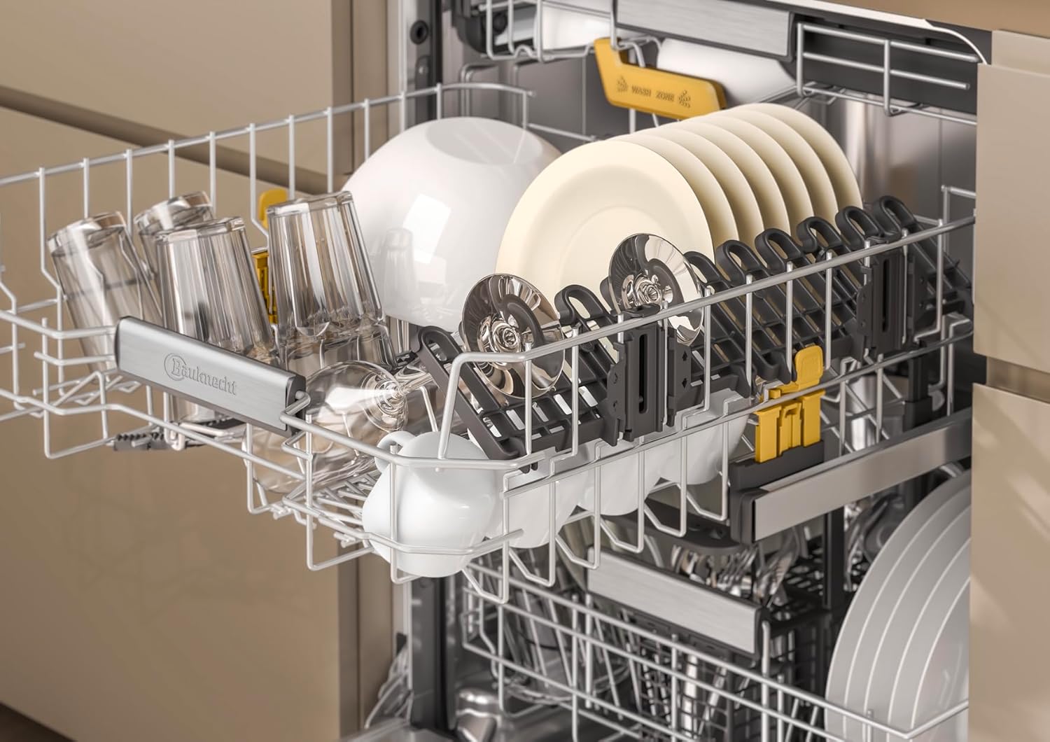 MULTI ZONE - Clever spülen im Kleinformat. Mit der speziellen Mehrfachzonen-Reinigungsfunktion können Sie die Spülkraft Ihres Bauknecht Geschirrspülers gezielt auf den oberen oder den unteren Spülkorb konzentrieren. Dabei reinigen Sie zuverlässig kleinere Geschirrmengen oder besonders hartnäckig verschmutzte Pfannen und Töpfe und sparen gleichzeitig Wasser und Strom.