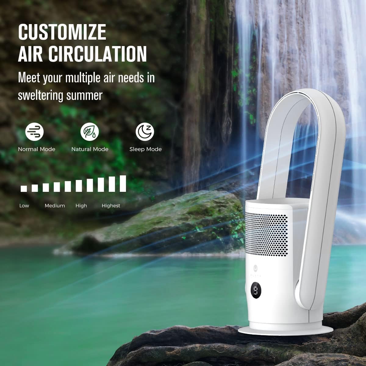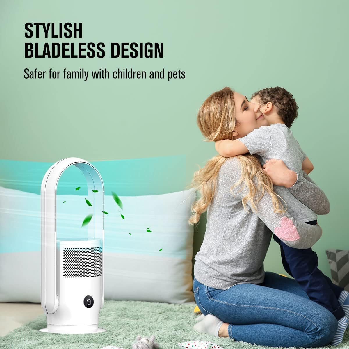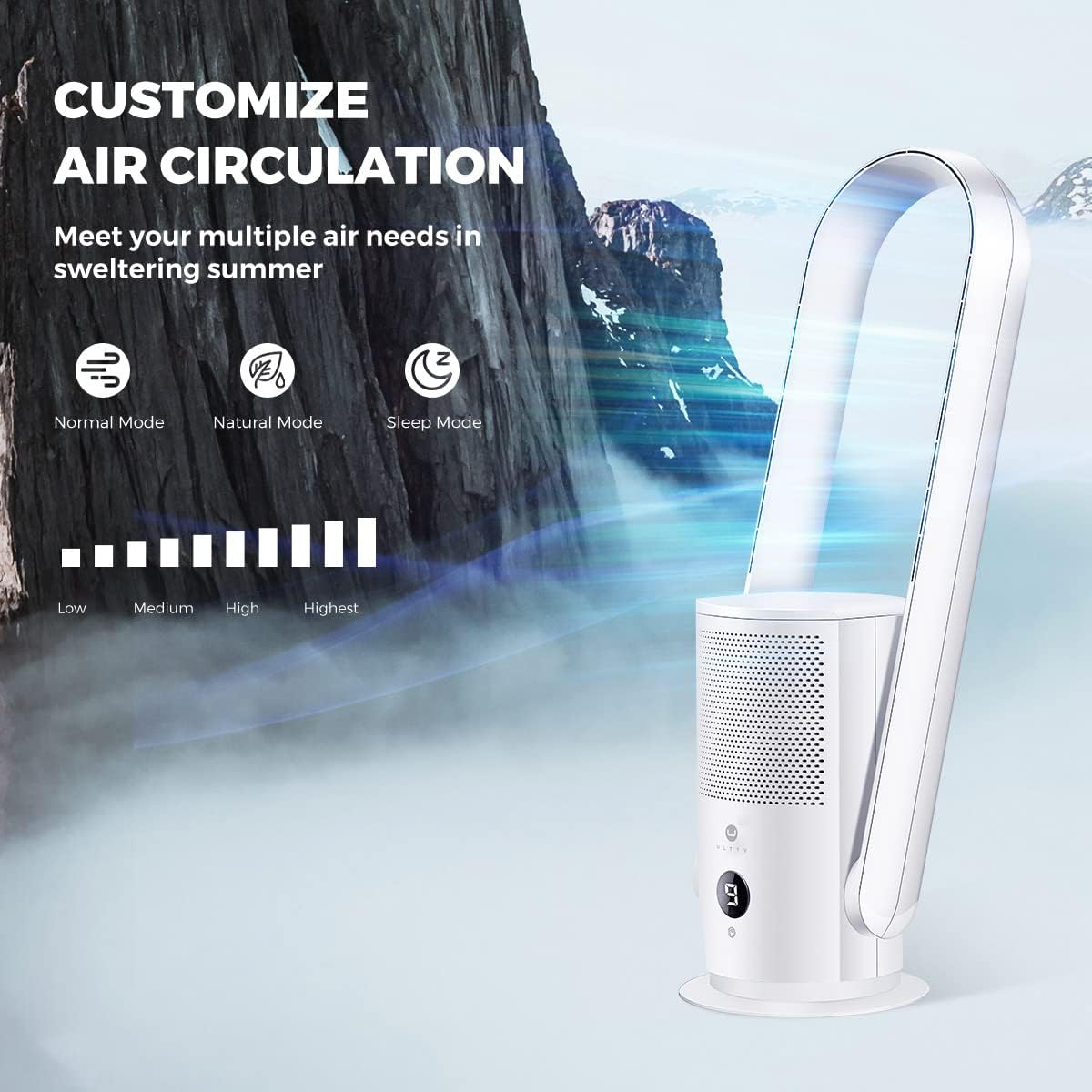 Rotorloser Ventilator Technologie: Rotorloser ventilator verteilt effektiv eine ausreichende Luftzirkulation, um den Luftstrom schneller in Ihren Raum zu bringen. Keine Unfälle mehr mit schnell drehenden Flügeln für Kinder und Haustiere. Erzeugte eine super sanfte Brise, sorgte für ultrakomfortable Kühlung und war auch babyfreundlich.