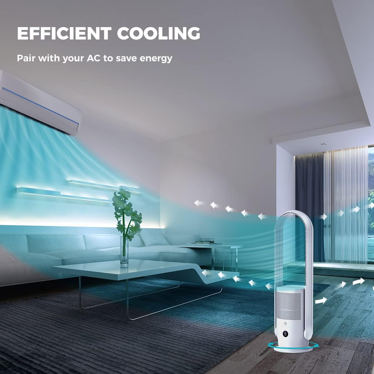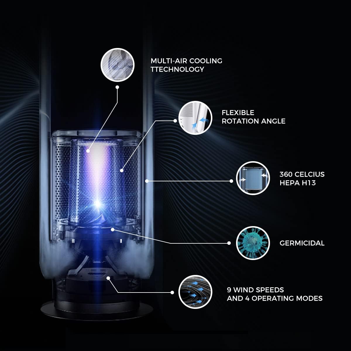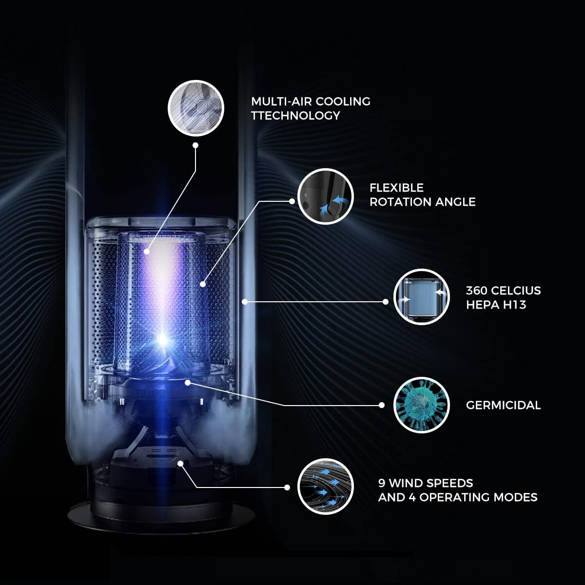 Rotorloser Ventilator Technologie: Rotorloser ventilator verteilt effektiv eine ausreichende Luftzirkulation, um den Luftstrom schneller in Ihren Raum zu bringen. Keine Unfälle mehr mit schnell drehenden Flügeln für Kinder und Haustiere. Erzeugte eine super sanfte Brise, sorgte für ultrakomfortable Kühlung und war auch babyfreundlich.