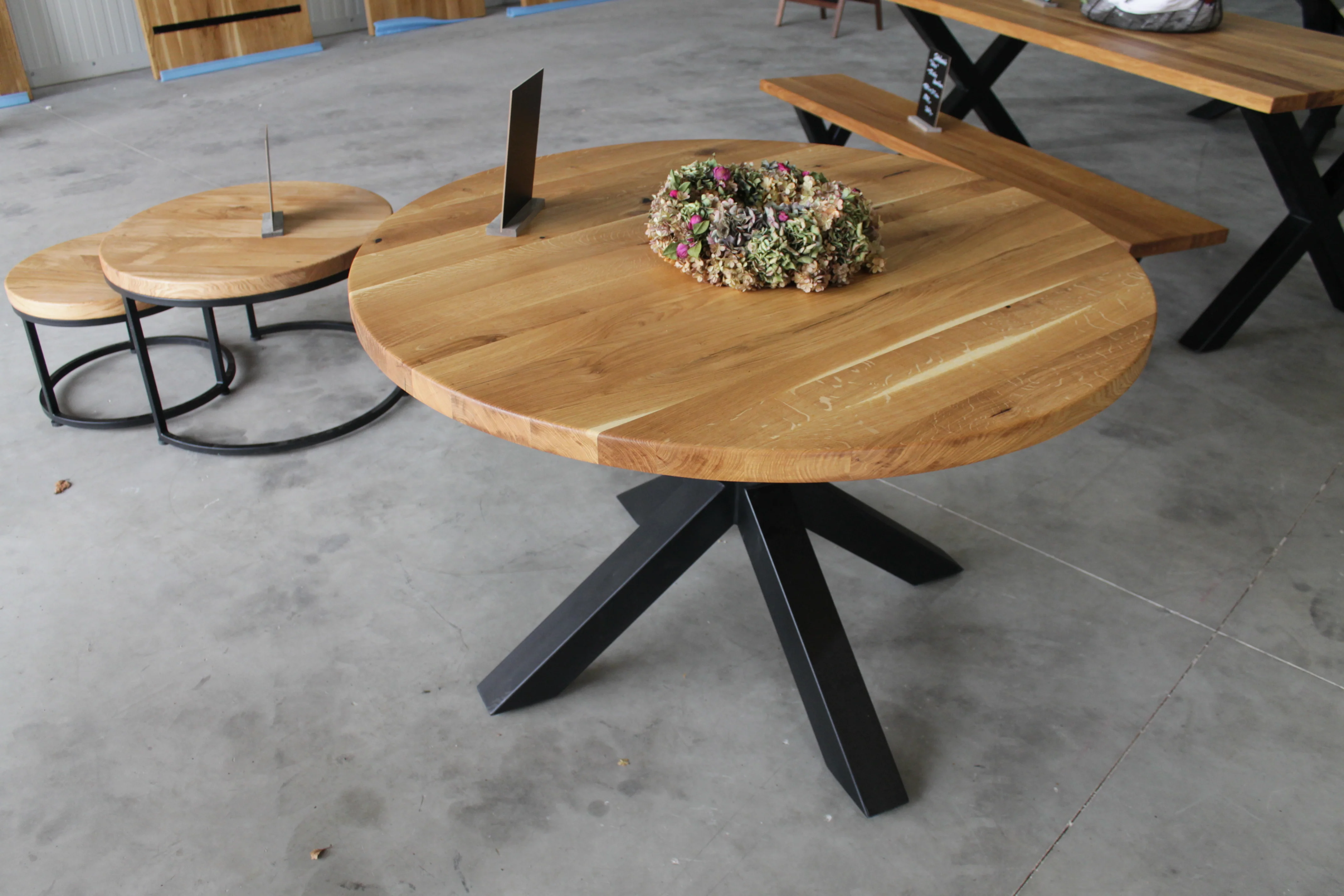 Serie UNA | Massivholztisch Rund - Eiche - inkl. Tischbein Matrix - versch. Gren und Farben | Durchmesser: 100 - 160 cm